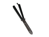 Ronin Gear #225 Practice Balisong Butterfly Knife GLOSS BlackVendor: RONIN GEARGloss Black Handles Ronin Gear's #225 Practice Butterfly knife features a 1.25" wide, rounded, perforated dull blade (blade cannot be sharpened!) that is ideal for safe training! High quality metal construction with optimal weight and balance. 5" closed, 4" blade. Legal under most state...