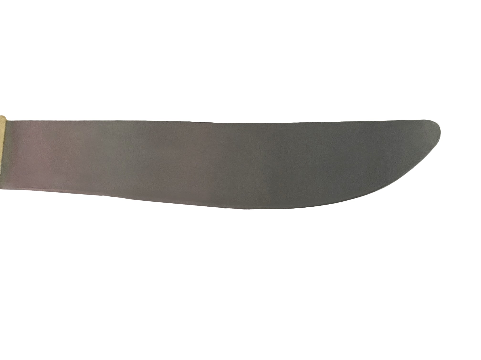 Basic metal practice knife features a 9.5" 'mini machete' metal blade with dull edge & rounded tip; and slab wood handle. A favorite of Kali, Arnis, Escrima Filipino martial arts & JKD trainers. 15" overall length. No sheath.