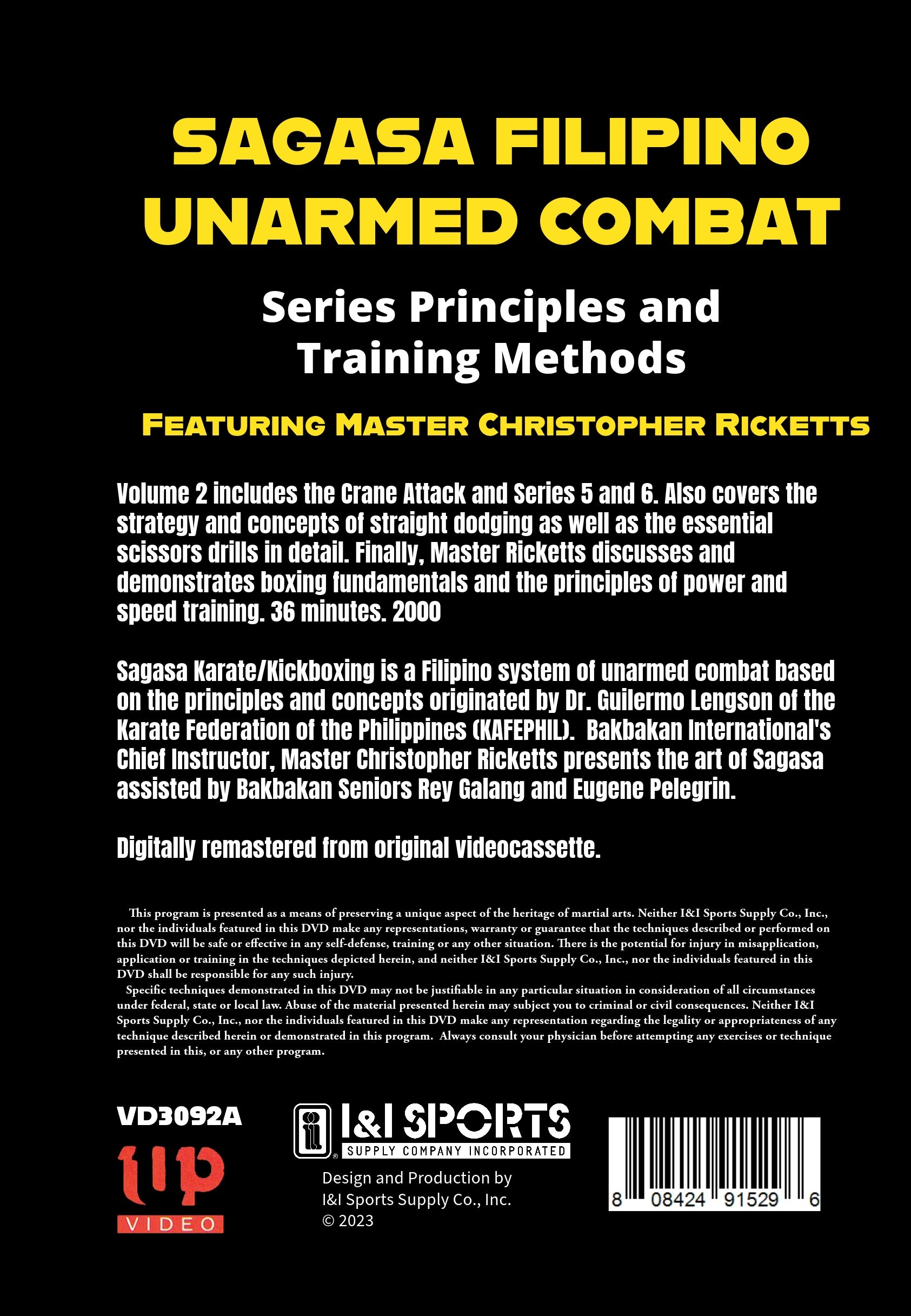 Strategy and concept of straight dodging as well as the scissors drills are discussed in detail. Also includes the Crane Attack and Series 5 and 6. Boxing fundamentals, principles of power and speed training are demonstrated. 36 minutes. 2000