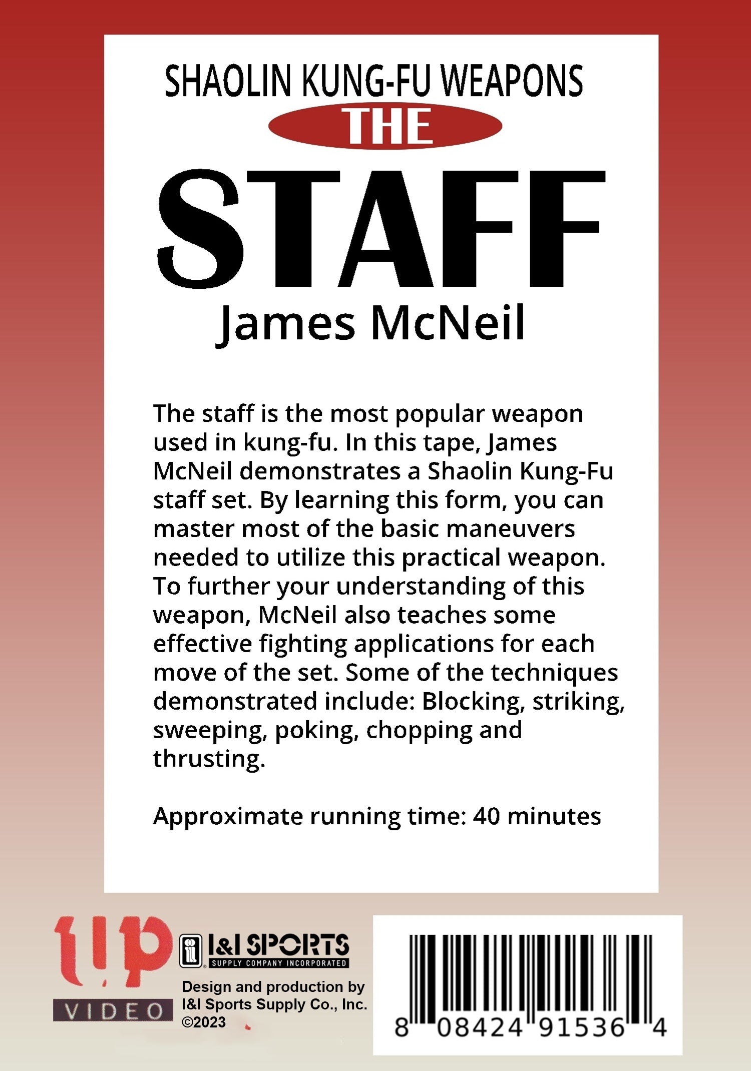The Staff - In this DVD; James McNeil demonstrates how to use the Shaolin Kung-Fu staff in a step-by-step; easy to learn format. The staff is the most popular weapon used in kung fu. McNeil demonstrates a Shaolin kung fu staff set. By learning this form; you can master most of the basic maneuvers needed to utilize this practical weapon. To further your understanding of this weapon; McNeil also teaches some effective fighting application for each move of the set. Some of the techniques demonstrated include: Blocking; striking; sweeping; poking; chopping and thrusting. 40 minutes.
