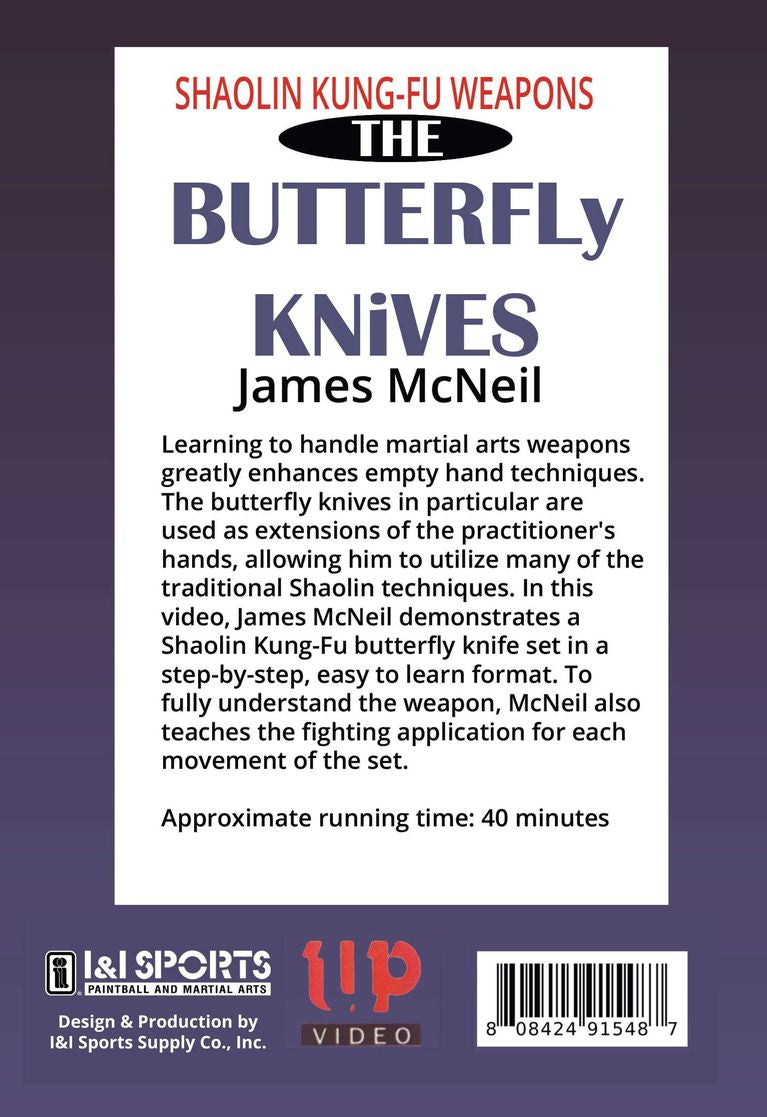 Butterfly Knives - In this DVD; James McNeil demonstrates a Shaolin Kung-Fu butterfly knife set in a step-by-step; easy to learn format. To fully understand the weapon; McNeil also teaches the fighting application for each movement of the set. 40 minutes.