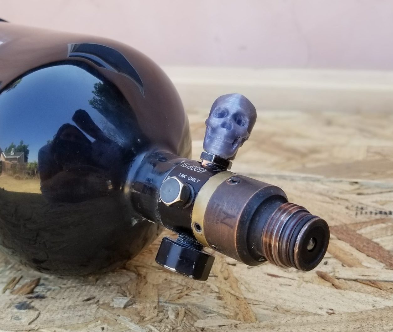 Pack of 2. Custom Skull HPA/Compressed Air nipple covers. Prevents dust and debris from getting into your air system. Built-in magnet holds it firmly in place (verify your magnets will attach to your fill nipple before ordering) . Durable PETG polymer construction. Made in USA.
