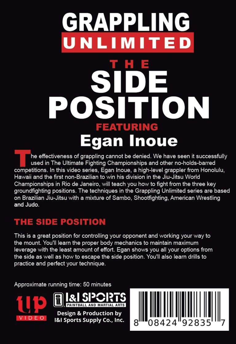 Volume 2: The Side Position - This is a great position for controlling your opponent and working your way to the mount. Learn the proper body mechanics to maintain maximum leverage with the least amount of effort. Egan Inoue shows you all your options from the side as well as how to escape the side position. You'll also learn drills to practice and perfect your technique. 54 min.