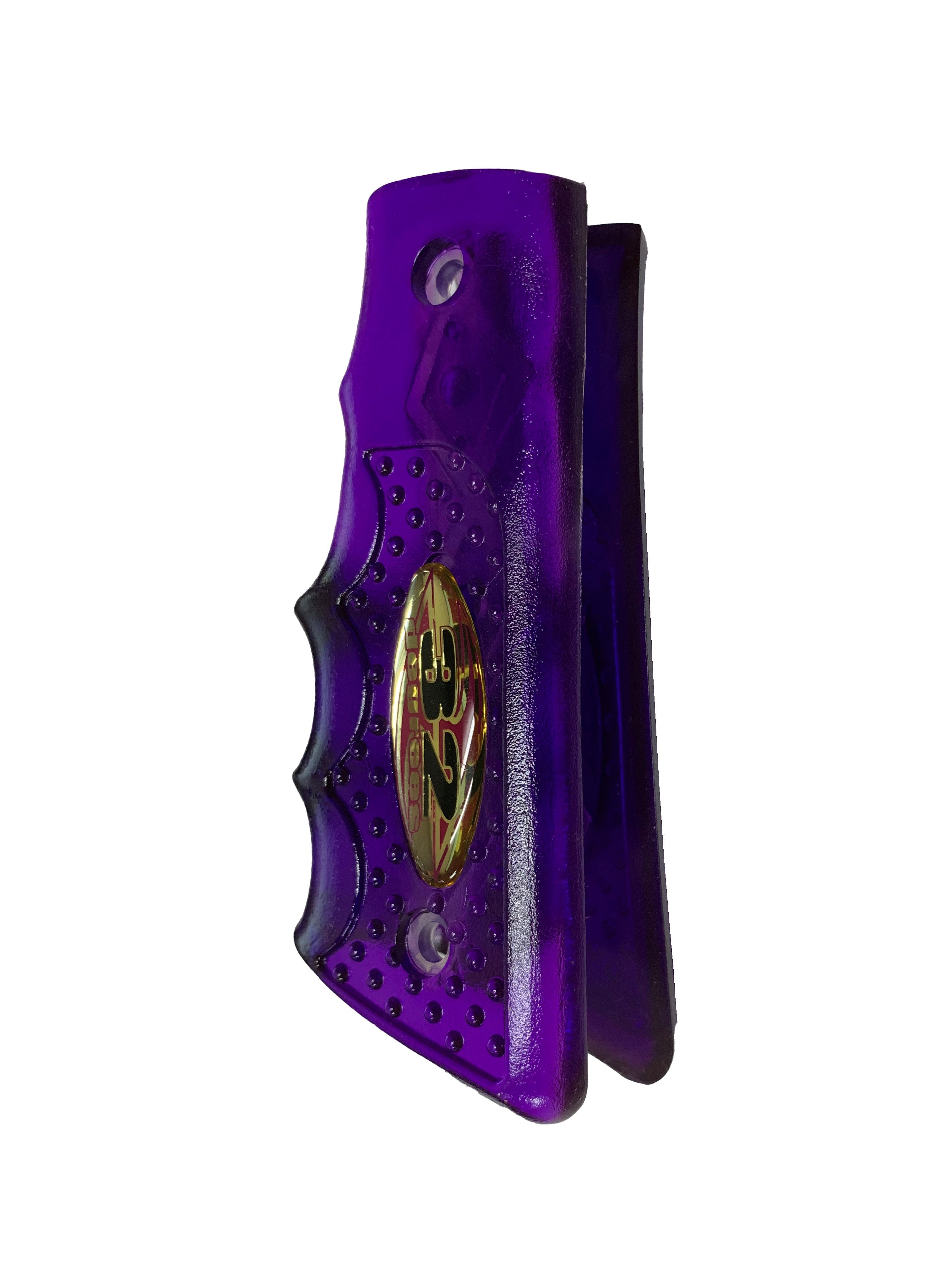 These wrap around grips feature a textured 'gel' finish which is not sticky but provides the perfect, positive grip. Finger grooved for maximum comfort. Great feel! Universal design fits any standard 45 trigger frame. 2 screw per side design (screws not included).