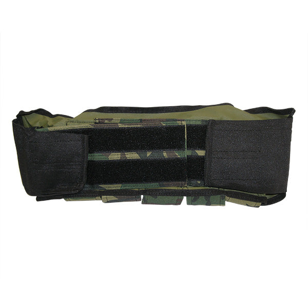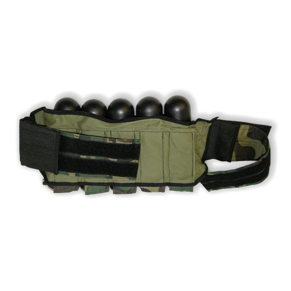 Woodland camouflage pack with all the features of the most expensive models! Features 5 open pod slam pockets. Capable of carrying 100 or 140 round tubes! TUBES ARE NOT INCLUDED!! Fully adjustable reinforced wide hook & loop waist belt and durable construction throughout. Waist size fully adjustable from 25"-48".