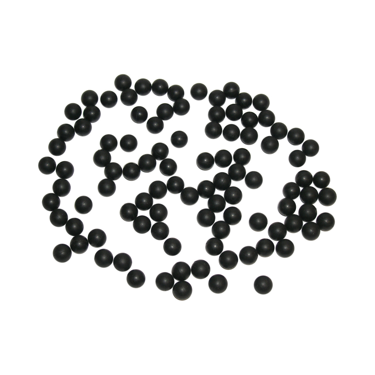 Bag of 100 reusable paintballs. Dense foam rubber balls are perfect for 'no mess' use. Can be safely used indoors. Black.