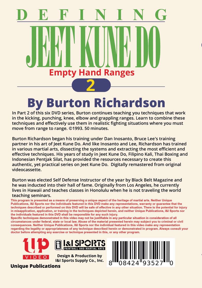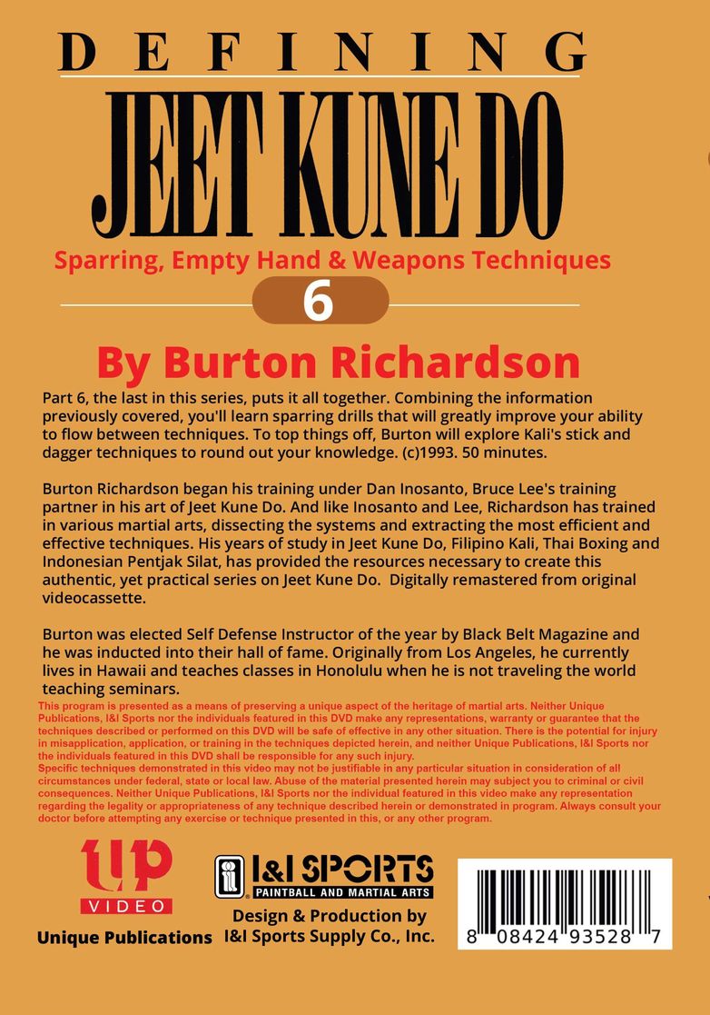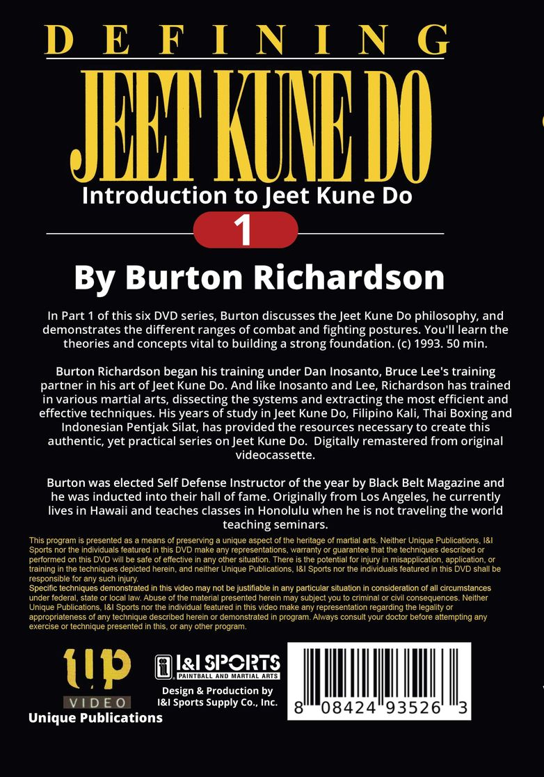Burton began his training under Dan Inosanto, Bruce Lee's training partner in his art of Jeet Kune Do. And like Inosanto and Lee, Richardson has trained in various martial arts, dissecting the systems and extracting the most efficient and effective techniques. His years of study in Jeet Kune Do, Filipino Kali, Thai Boxing and Indonesian Pentjak Silat, has provided the resources necessary to create this authentic, yet practical series on Jeet Kune Do.