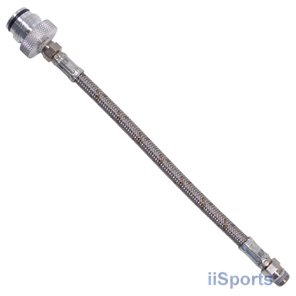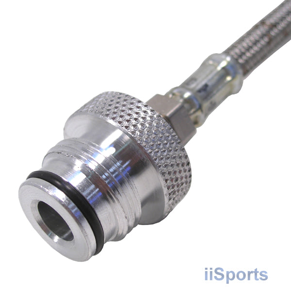 Bottomline Hose Adapter Set for most Paintball markers with vertical ASA. Includes an ASA adapter (screws into your vertical tank adapter and standard 8in long steel braided hose with male ends. Allows you to reposition your tank for better balance. Does NOT include tank; bottomline adapter; elbows or any other parts. No instructions. Pictured with bottomline adapter that does NOT fit most guns (just discard).