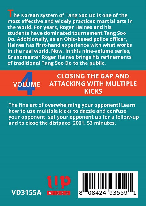 Vol. 4: Closing the Gap and Attacking with Multiple Kicks - how to use multiple kicks to dazzle and confuse your opponent.  53 min.