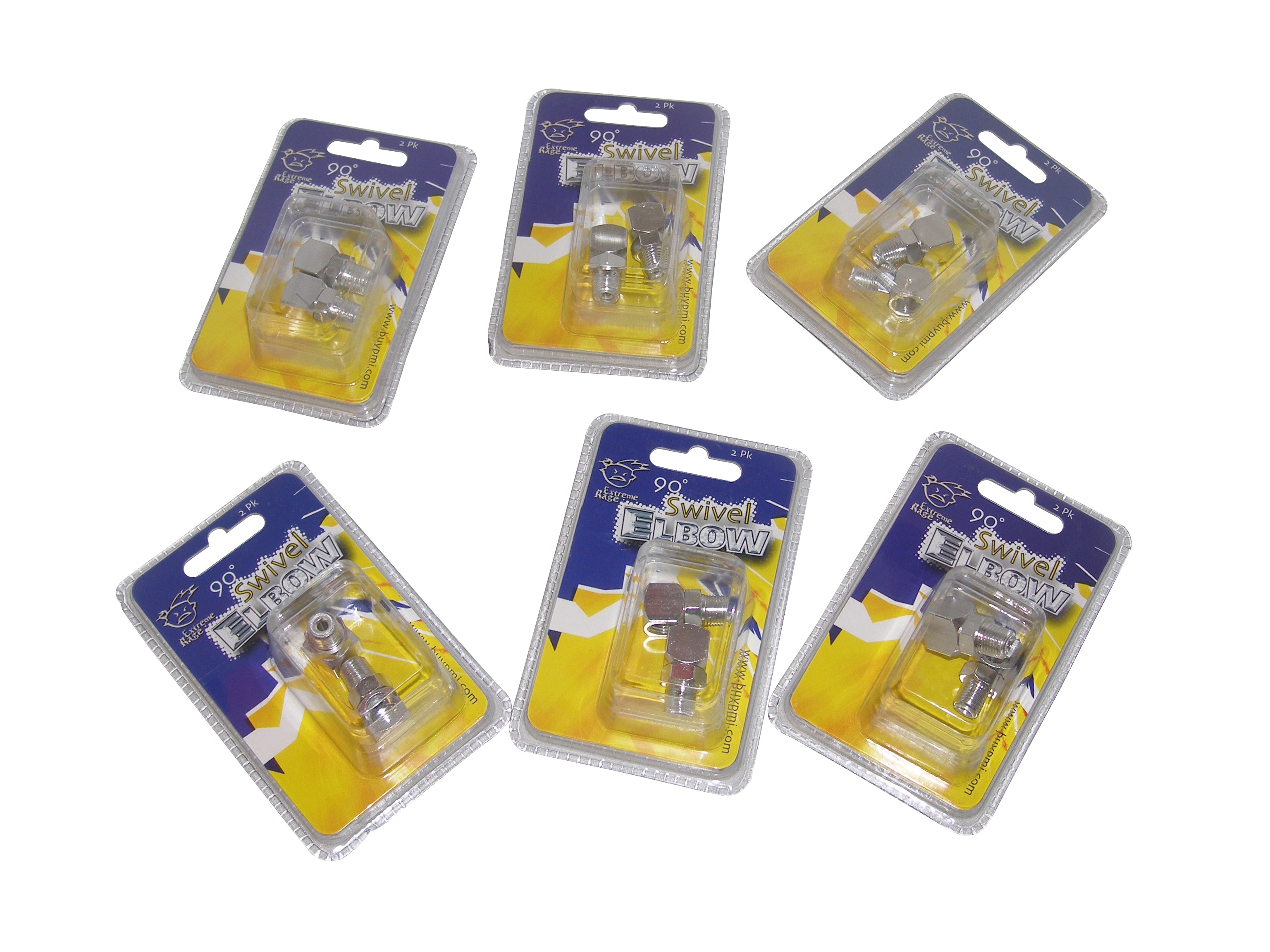 90 degree elbow with 1/8 inch npt male and female ends. Precision machined and anodized aluminum. This special fitting swivels; even while pressurized. Can be used with Macroline (straight fitting required). 2 Elbows in Pack. Silver.
