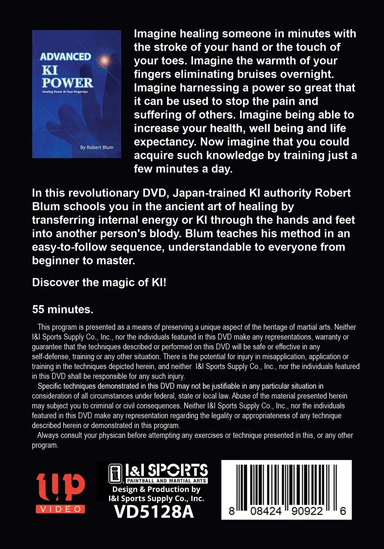 Advanced KI Power: Healing Power at Your Fingertips Imagine healing someone in minutes with the stroke of your hand or the touch of your toes! Imagine the warmth of your fingers eliminating bruises overnight. Imagine harnessing a power so great that it can be used to stop that pain and suffering of others. Imagine being able to increase your life expectancy. Now imagine that you could acquire such knowledge by training just a few minutes a day. In this revolutionary DVD; Japan-trained KI authority Robert Blum schools you in the ancient art of healing by transferring internal energy or KI through the hands and feet and into another person's body. Blum teaches his method in an easy-to-follow sequence understandable to everyone from beginner to master. Discover the magic of KI! 55 minutes.