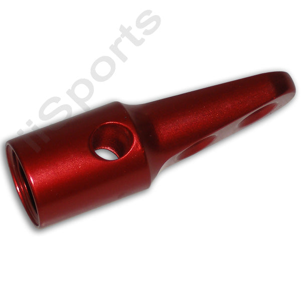 Angled bottomline ASA adapter. Compact design angles your tank to minimize liquid CO2 drawn into your marker during rapid firing. Deluxe 2-Hole Bottom Line Tank Adapter from 32 Degrees. Will fit most common grip frames. Precision machined aluminum; with bright RED finish. Features dual 1/8" NPT tapped holes so you can install hose (not included) and a gauge (not included). Both holes are NOT plugged and there is a safety bleed hole for safe removal of your tank. Mounting holes are counter-sunk and comes with mounting screws. Hose; fittings and instructions NOT included.