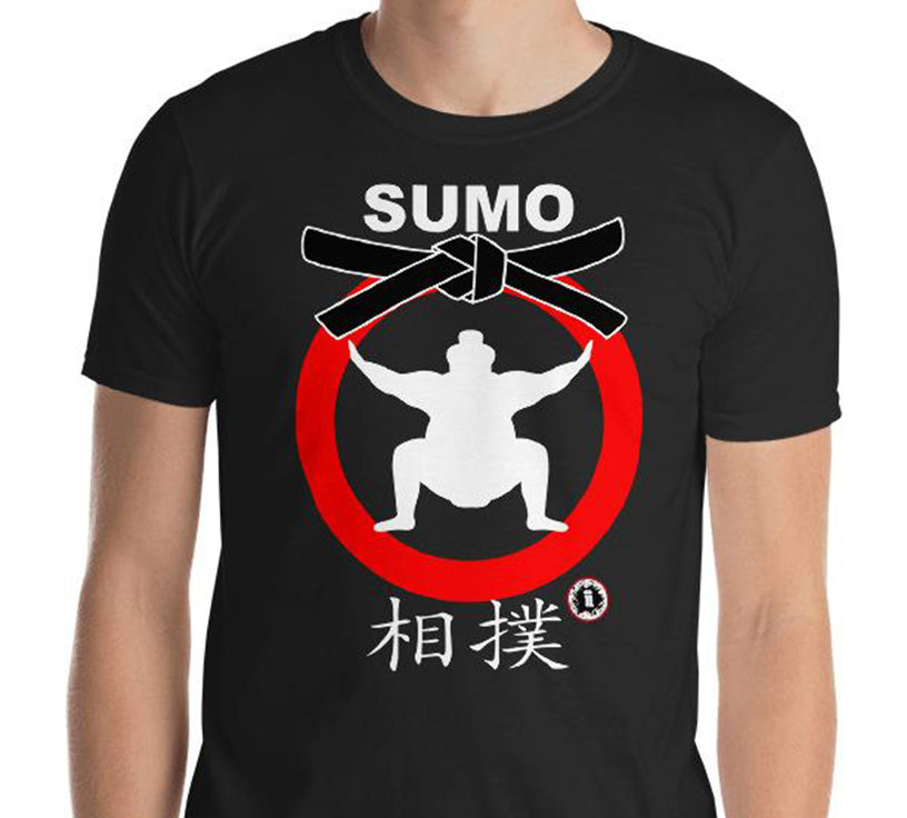 Stylized multi-color Sumo design with kanji printed on a black premium cotton/poly blend T-shirt. Printed on the front of the shirt. Lightweight classic fit, double-needle sleeve and bottom hem Great casual wear! Adult sizes. Made in USA.