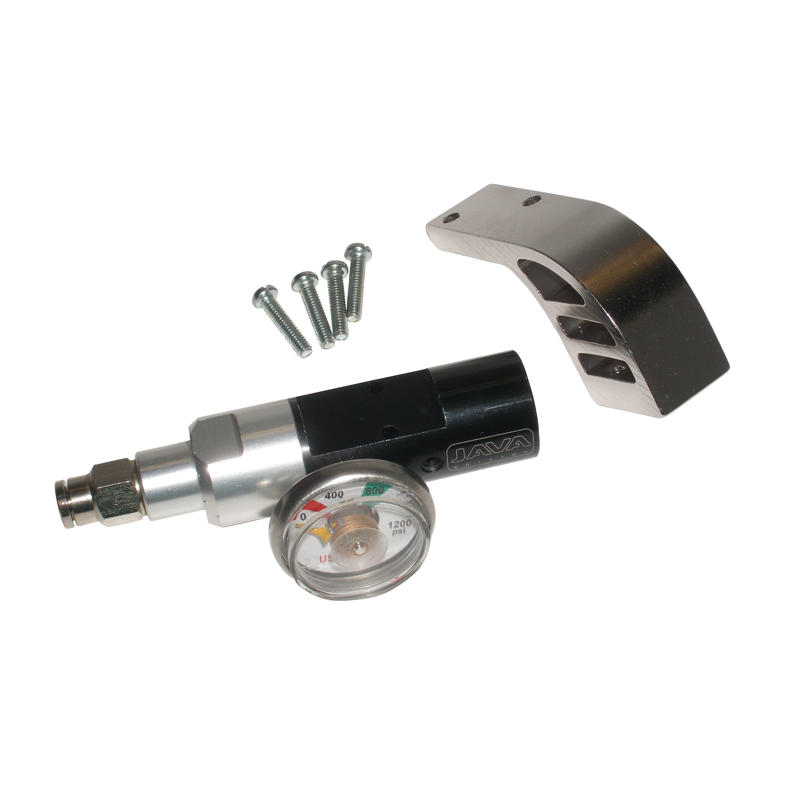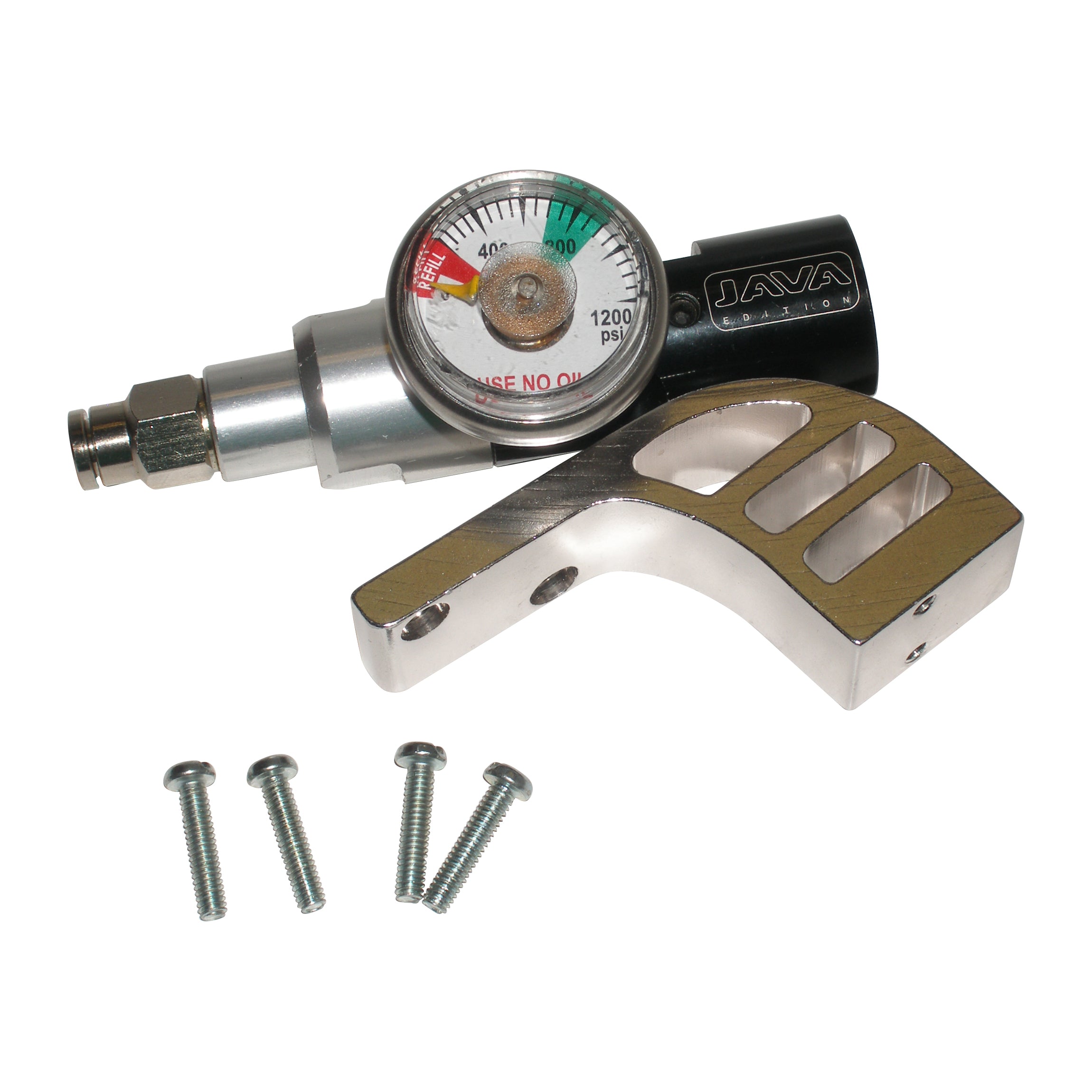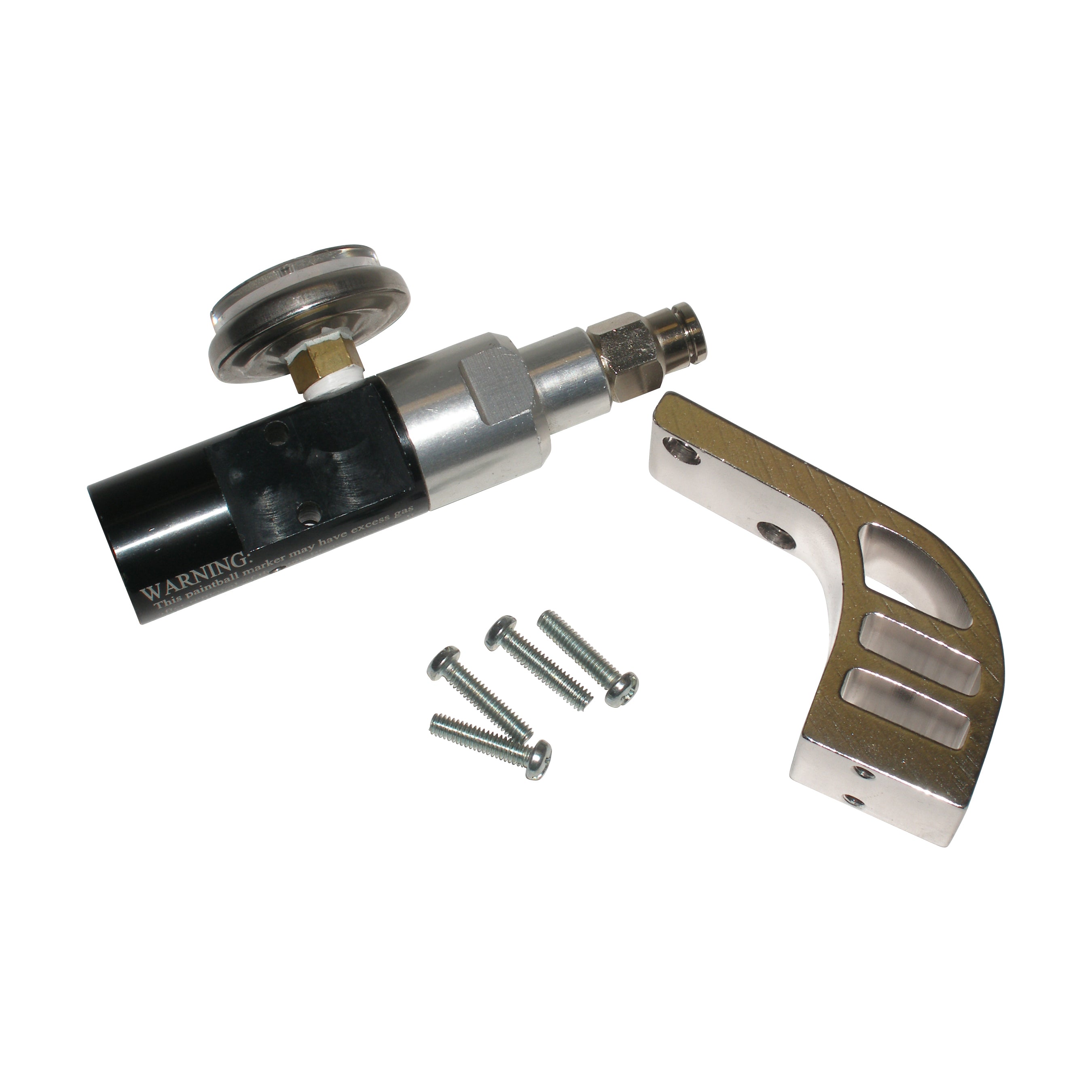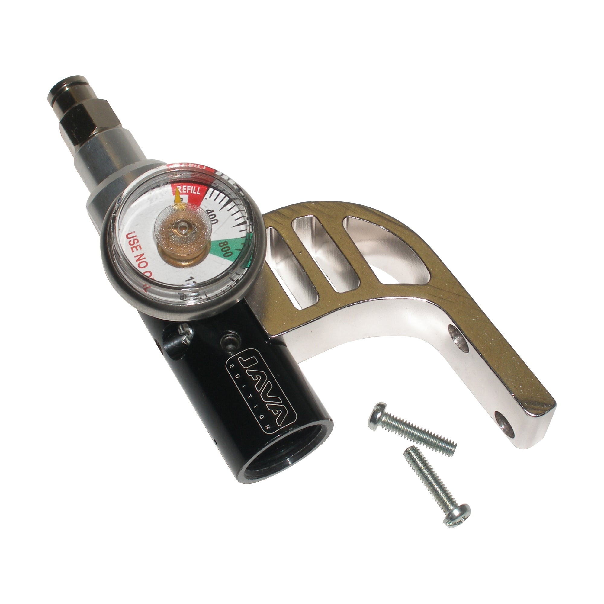 Complete setup will fit any Spyder diagonal or can be drilled to fit standard 2-hole grip! Unused. Set includes an adjustable bottomline Java regulator with macroline straight fitting and universal drop forward. Just attach to your marker and adjust operating pressure (start at lowest pressure and increase until correct output is achieved). Grip mounting screws, macroline hose and ASA fitting NOT included. Adjusts from 250psi - 850psi.