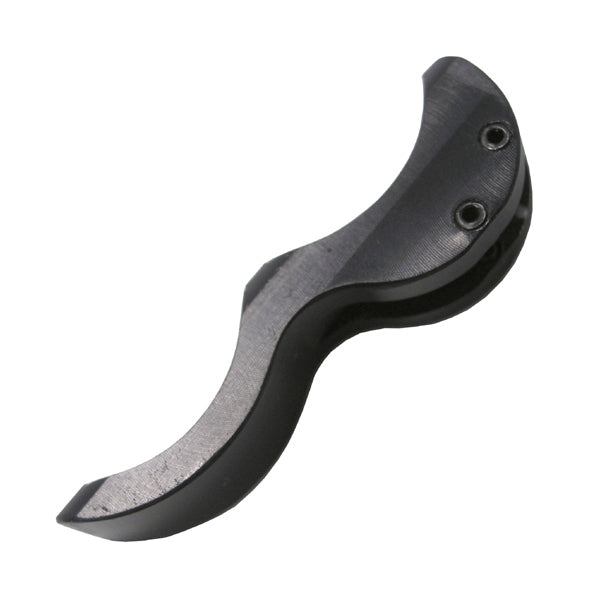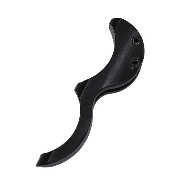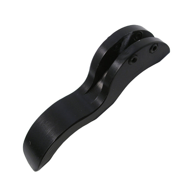 Precision machined black hard anodized aluminum trigger shoe attaches to old style Autococker single trigger. Mounts firmly in place with 2 set screws. May fit other 1/8" wide single trigger guns but may require some trigger guard modification. Increases your rate of fire and eliminates finger fatigue! Ribbed for comfort and positive grip.