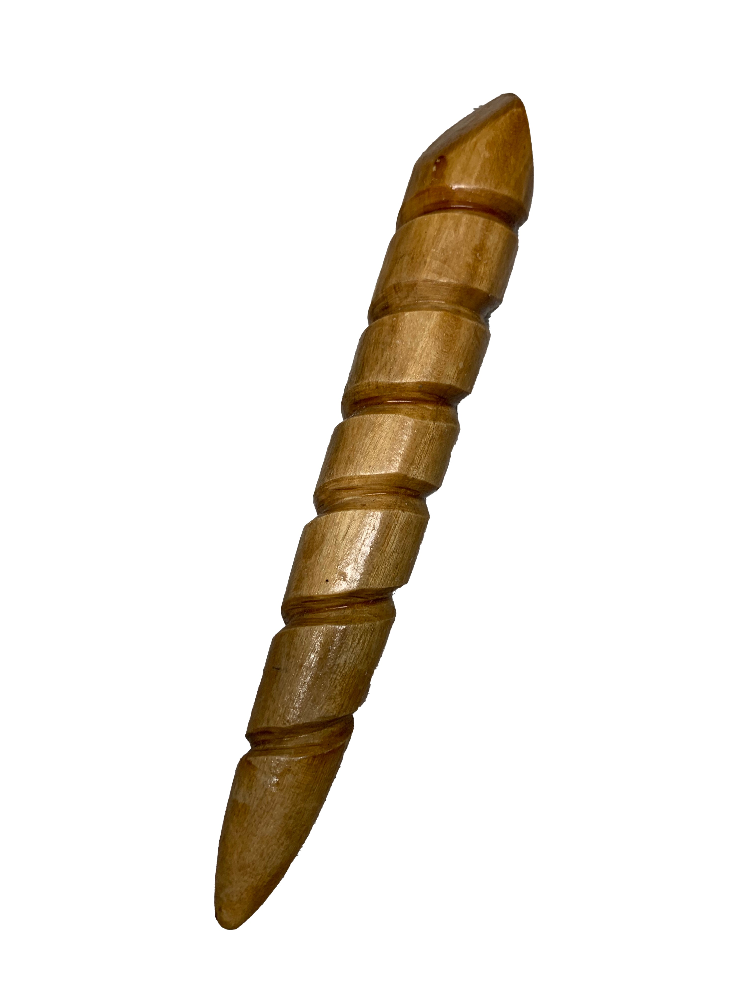 This Handcrafted Filipino Dulo-Dulo is imported direct from the Philippines. Uniquely styled pocket stick defense stick is grooved for a positive grip and features an unusual taper and pointed (sharp!) ends. This rare self defense weapon is utilized in several martial arts styles and is especially popular with Escrima, Kali, Arnis and Indonesian arts. Crafted from filipinohardwood which is extremely dense and rare. Approx. length 6.5 inch. Weight: 3 oz.
