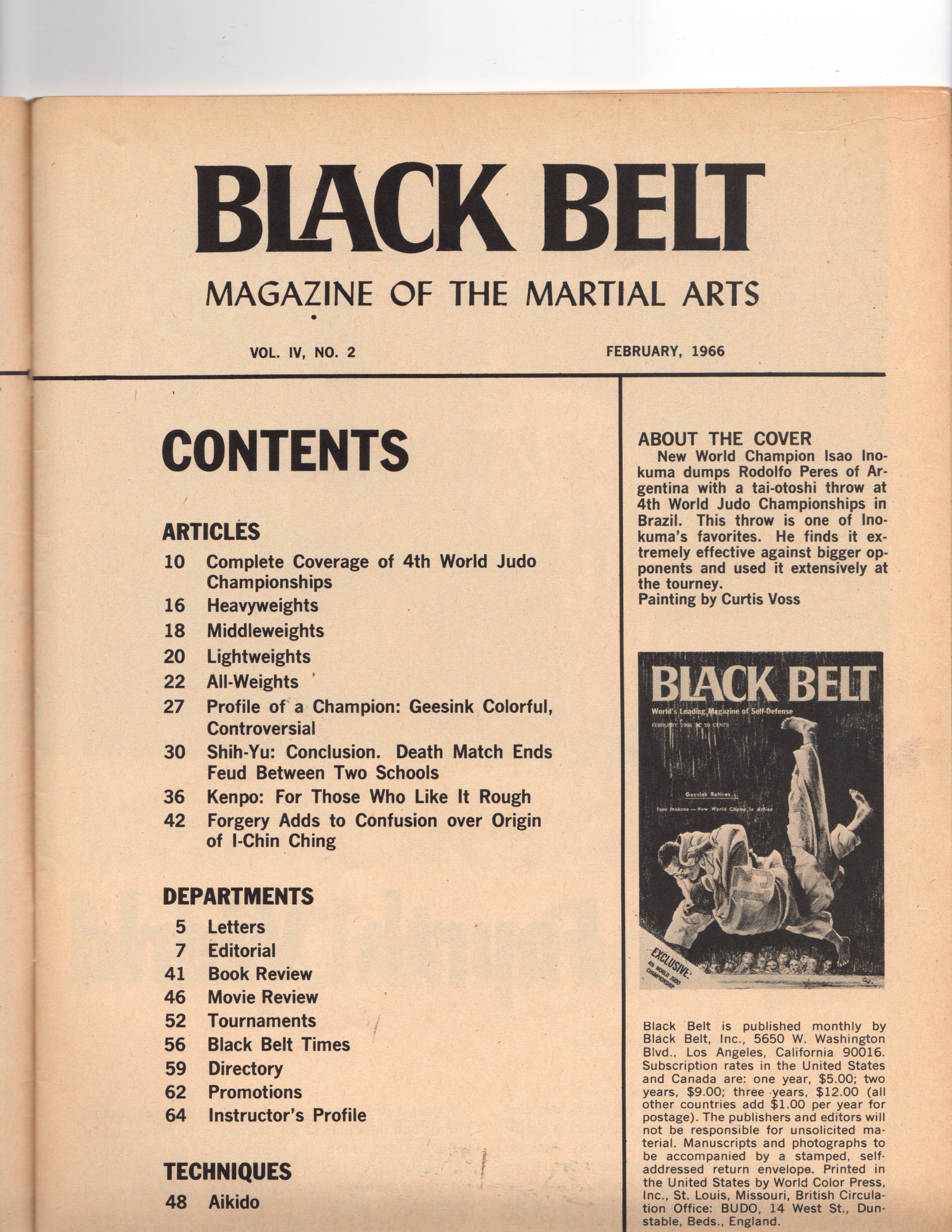 Original Black Belt Magazine. Very good condition. Normal wear. No missing pages. 8.5" x 11". 68 pages.