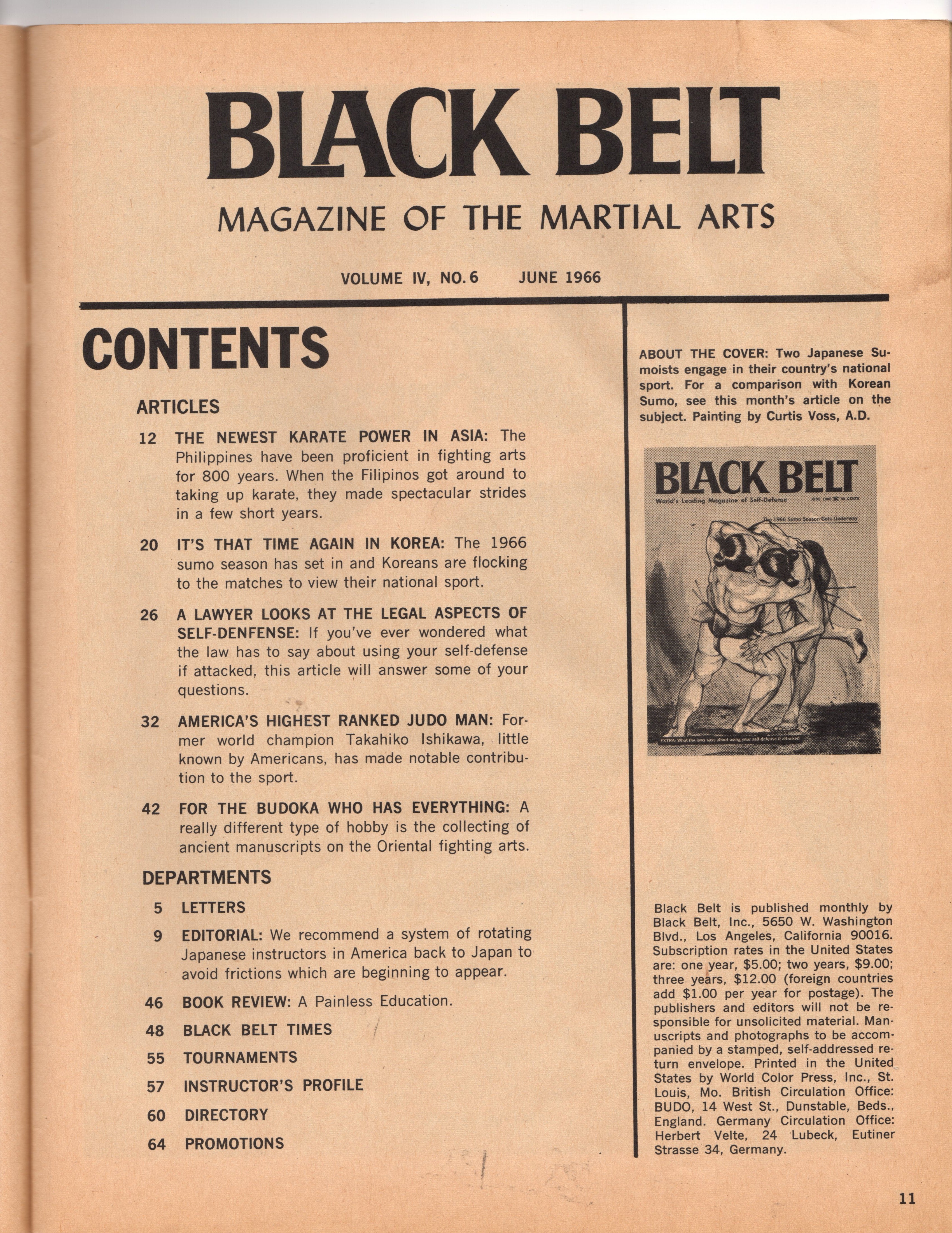 Original Black Belt Magazine. Very good condition. Normal wear. No missing pages. 8.5" x 11". 68 pages.
