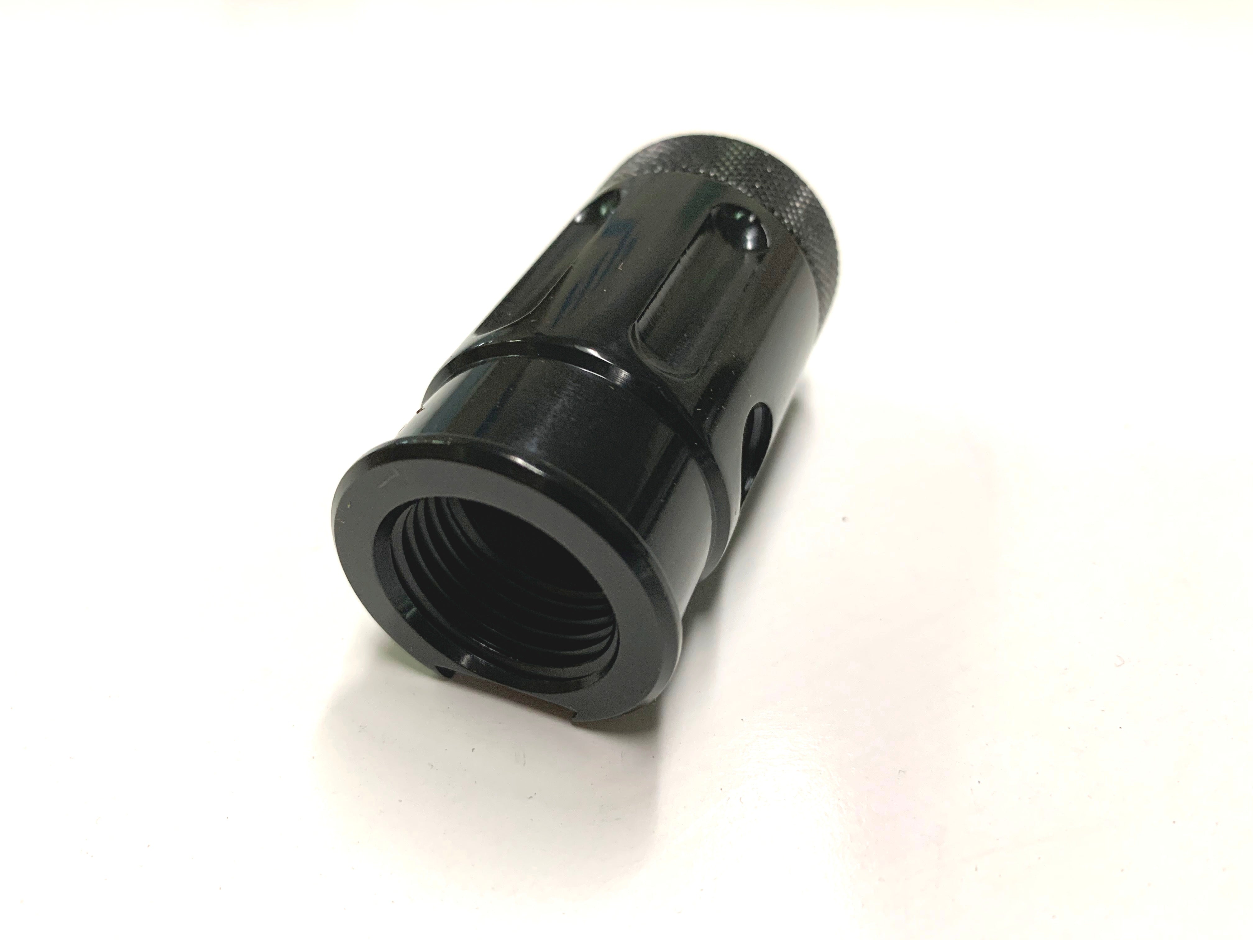 Extremely versatile unit! From 32 Degrees, this unit screws onto any CO2 or HPA tank valve and depresses the pin valve by screwing down the knob. Can be used with most Bottomlines and Drop Forwards with rails. Can also be used with Remote Systems or Fill Stations. Improved design is more compact and won't leak! Lightweight anodized aluminum unit with female side hole threaded 1/8" NPT (accepts standard CO2 hose fittings).
