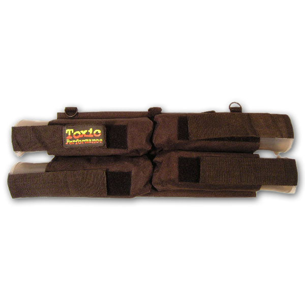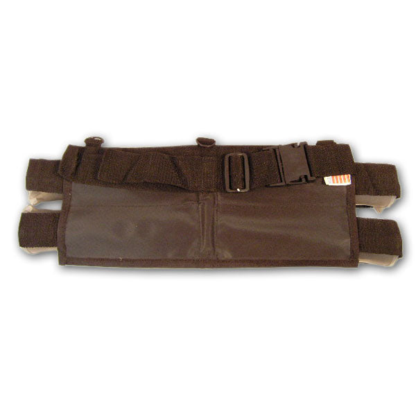 Low profile fanny harness which holds four 140 or 150 round flip-top tubes (NOT included). Suspender rings. Adjustable belt. Black.