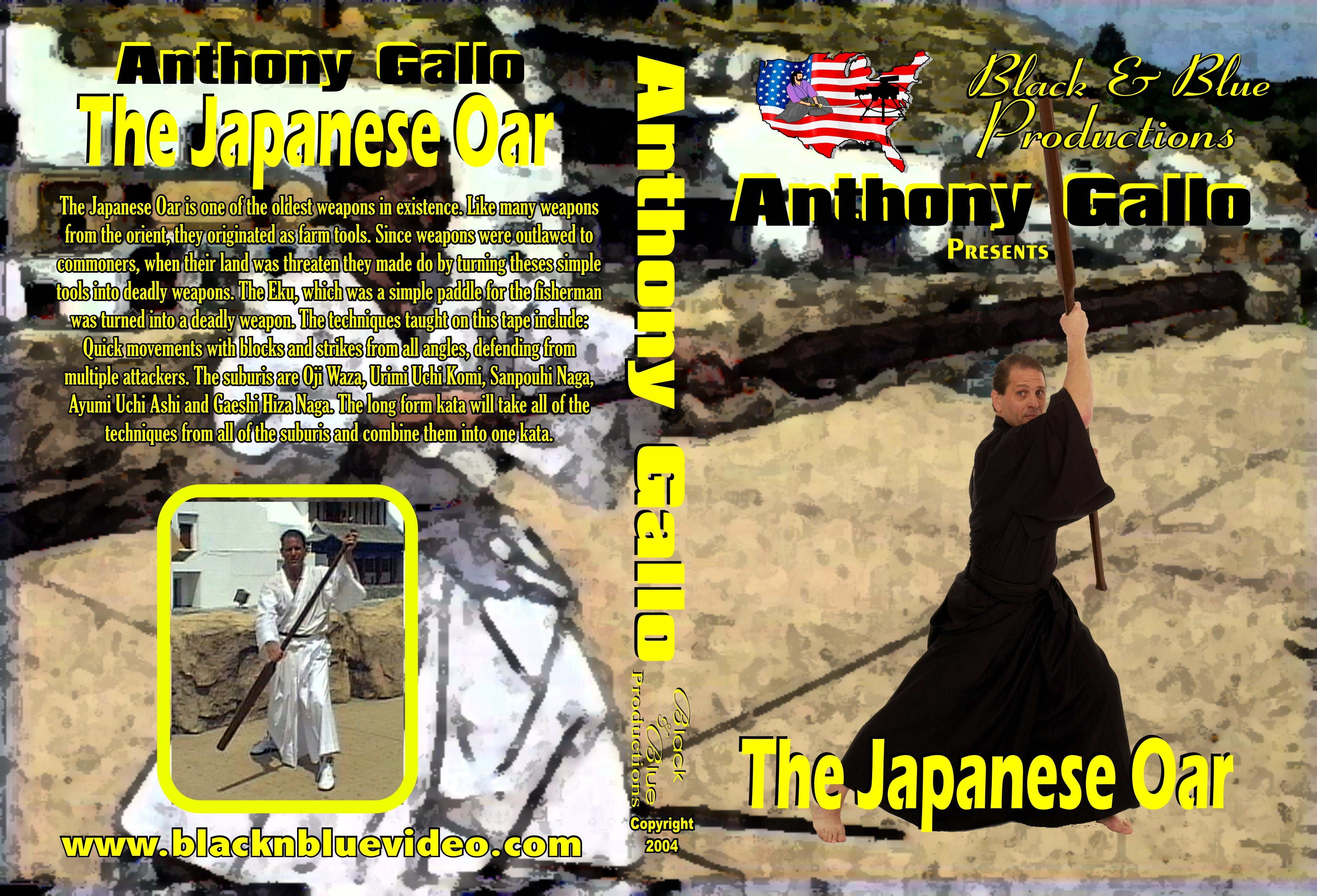 The Oar is one of the oldest weapons in existence. The Eku; which was a simple paddle for the fisherman was turned into a deadly weapon. The techniques taught on this tape include: Quick movements with blocks and strikes from all angles; defending from multiple attackers. The suburis are Oji Waza; Urimi Uchi Komi; Sanpouhi Naga; Ayumi Uchi Ashi and Gaeshi Hiza Naga. The long form kata will take all of the techniques from all of the suburis and combine them into one kata.