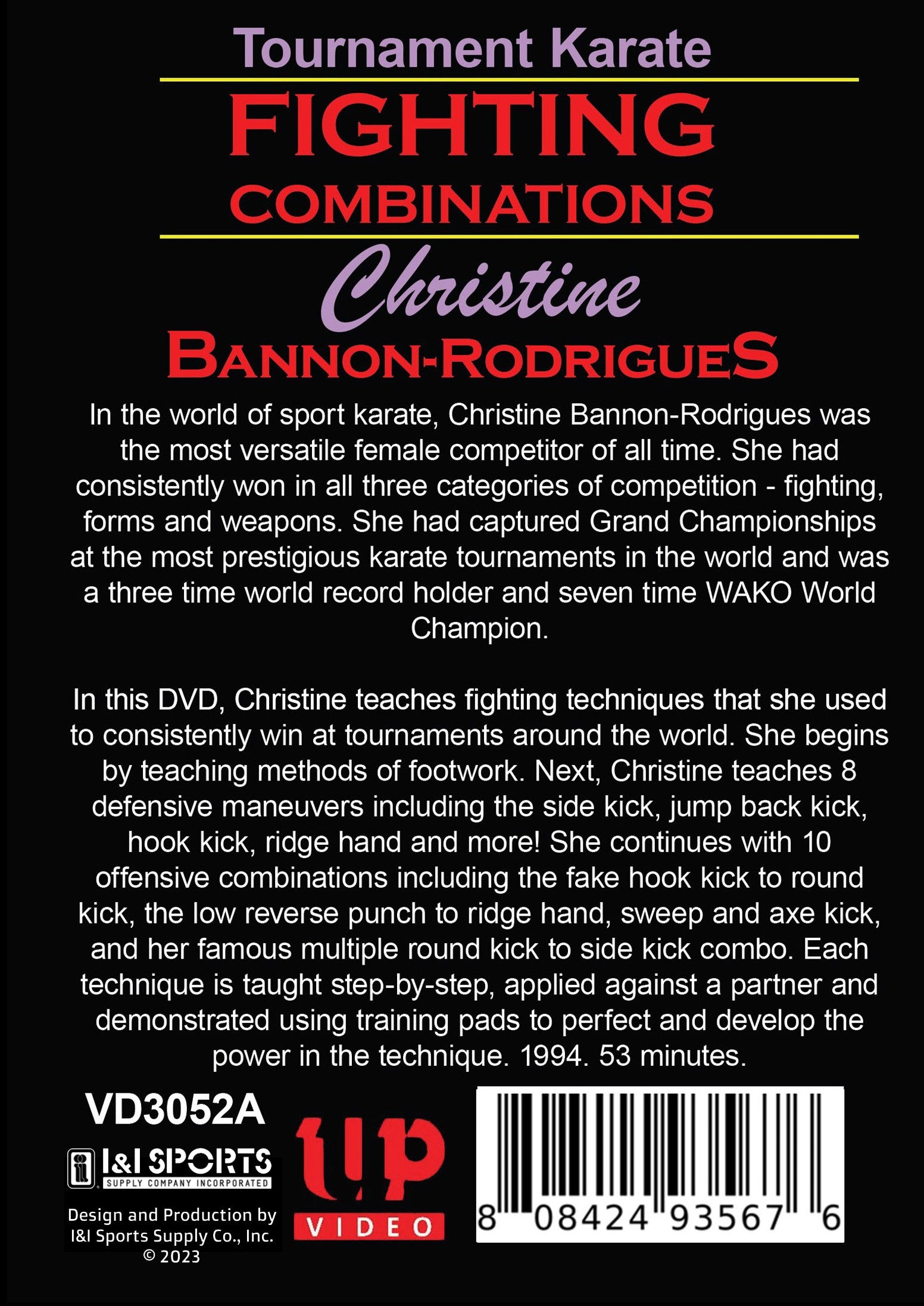 In this DVD Christine teaches fighting techniques that she uses to consistently win at tournaments around the world. She begins by teaching methods of footwork. Next, Christine teaches 8 defensive maneuvers including the side kick, jump back kick, hook kick, ridge hand and more. She continues with 10 offensive combinations like the fake hook kick to round kick; sweep and ax kick and her famous multiple round kick to side kick combo. Each technique is taught against a partner and training pads. 1994. 53 minutes.