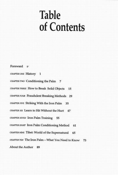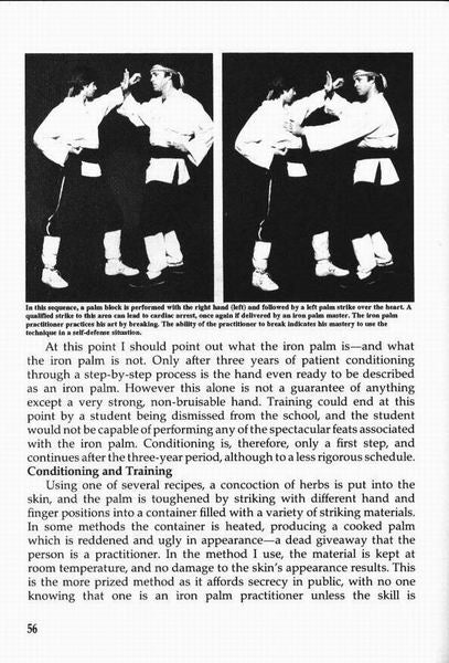 Brian Gray; one of the world's foremost authorities on iron palm philosophy and technique; takes you through every phase of this method. Learn conditioning techniques; breathing exercises and actual iron palm strikes. He'll also show you how to tell the difference between the legitimate iron palm practitioner and the fraud who uses gimmicks and sleight-of-hand to perform breaking feats. 7 X 10, 96 pages.