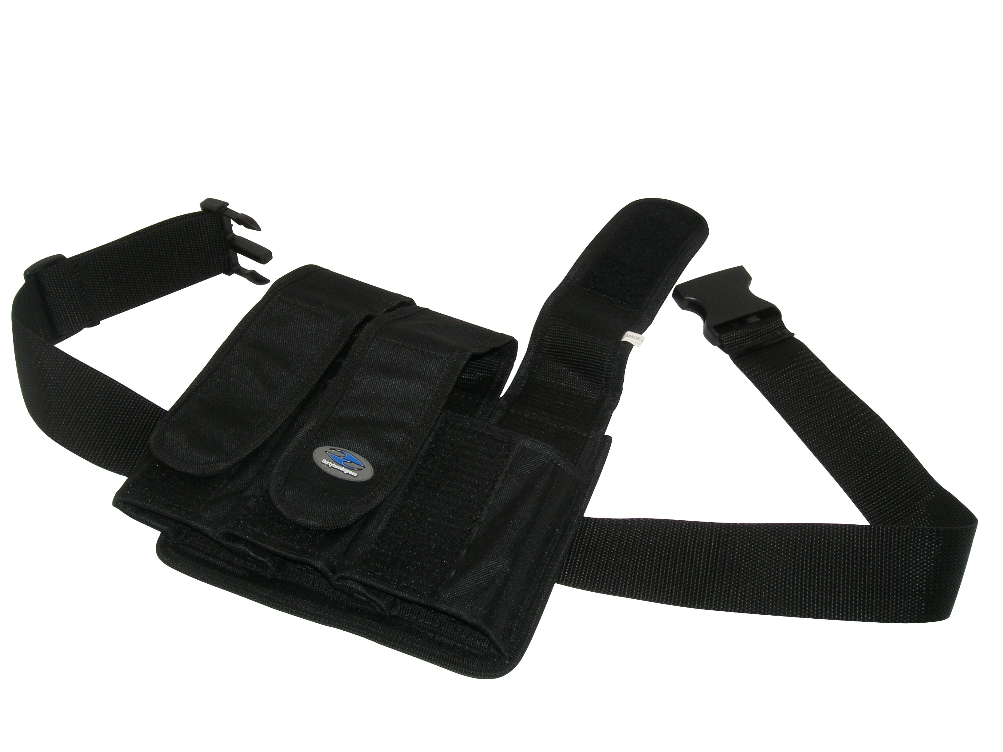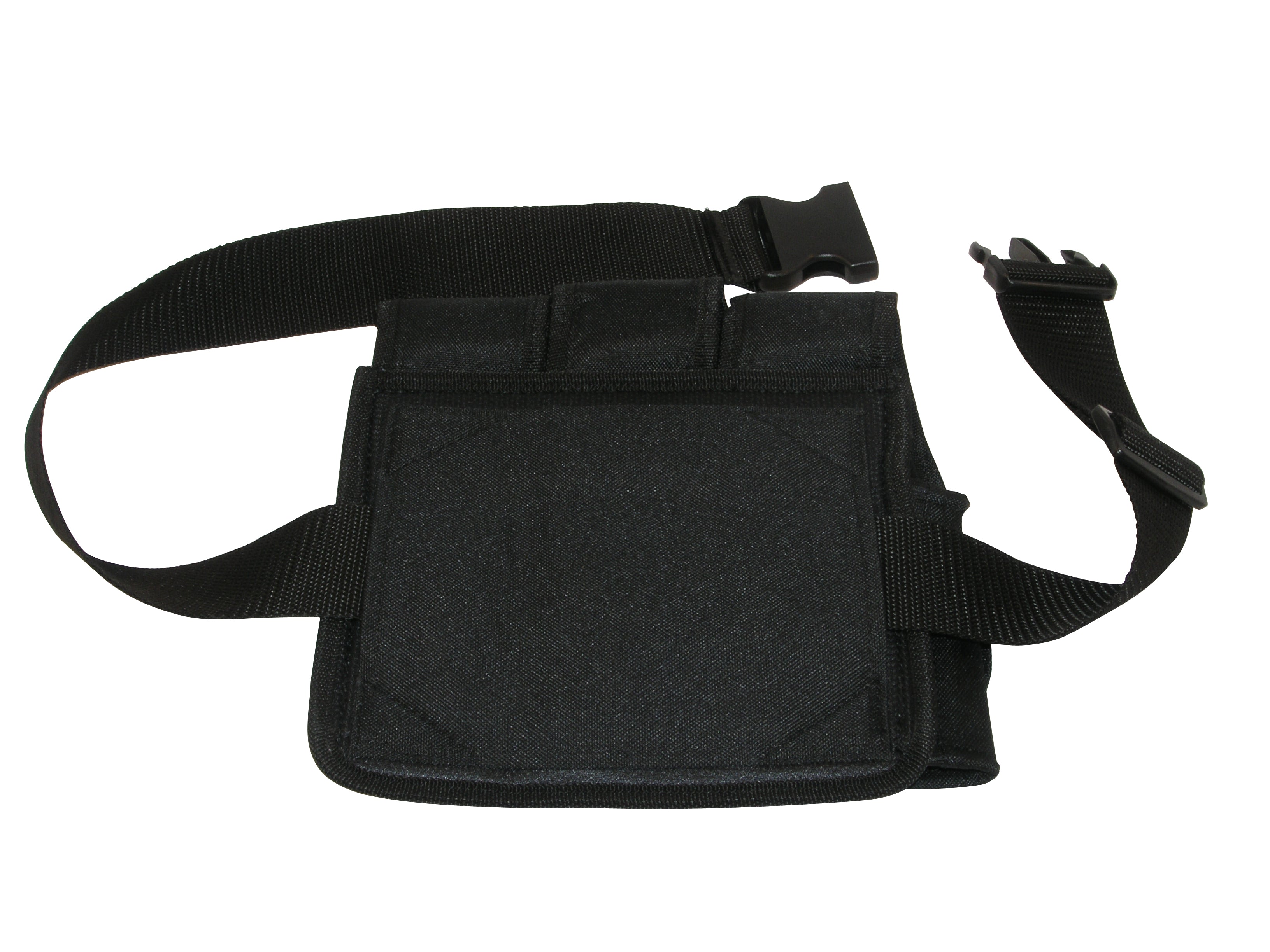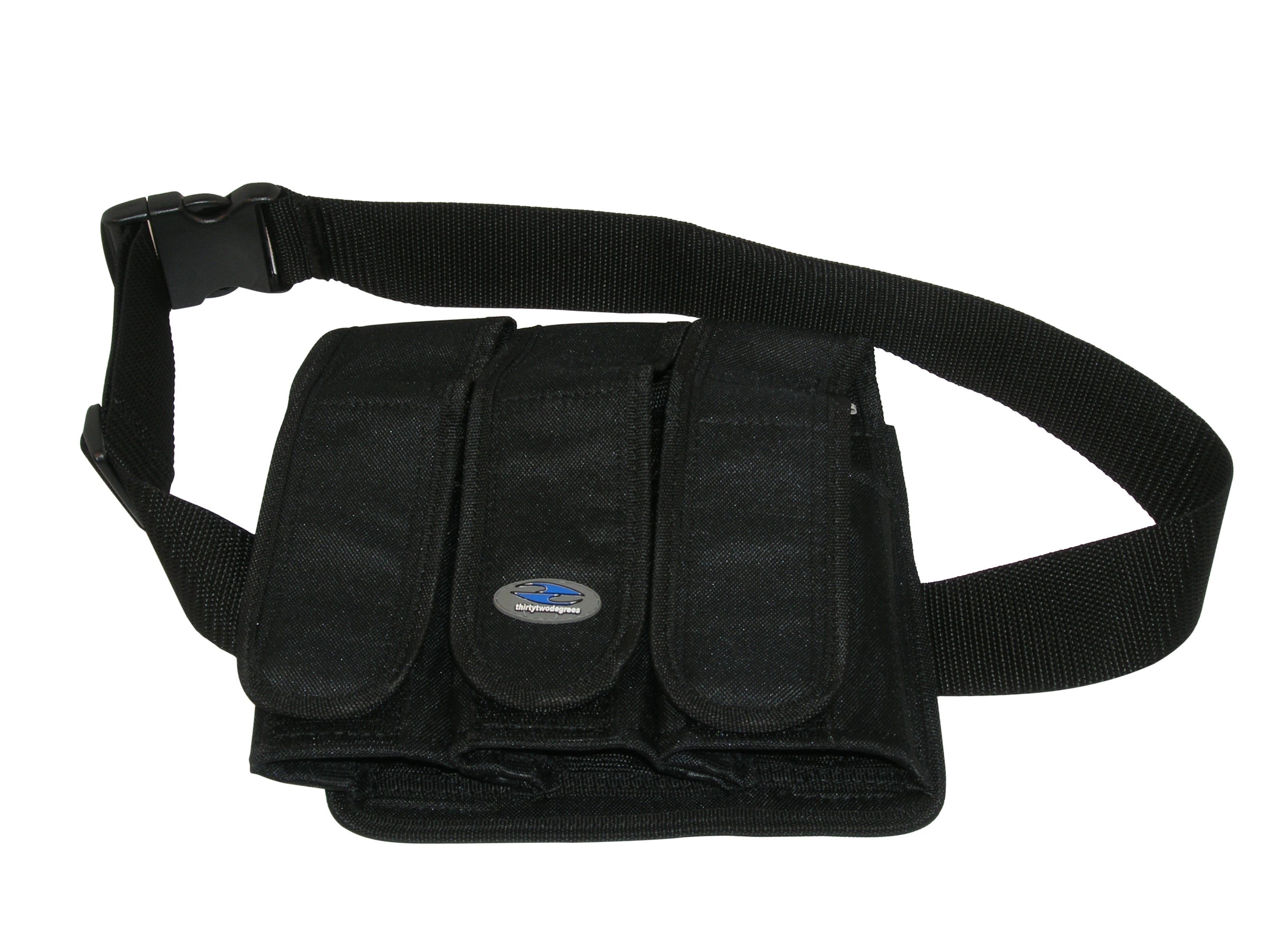 Very nice quality unit holds three 100 or 140 round flip-top tubes (NOT included) individual open-ended pouches with individual hook & loop flaps. Constructed of heavy, stain-resistant black polyester webbing. Reinforced stitching throughout. Adjustable web belt (28"-38") included. This is the perfect compact size for most recreational players!