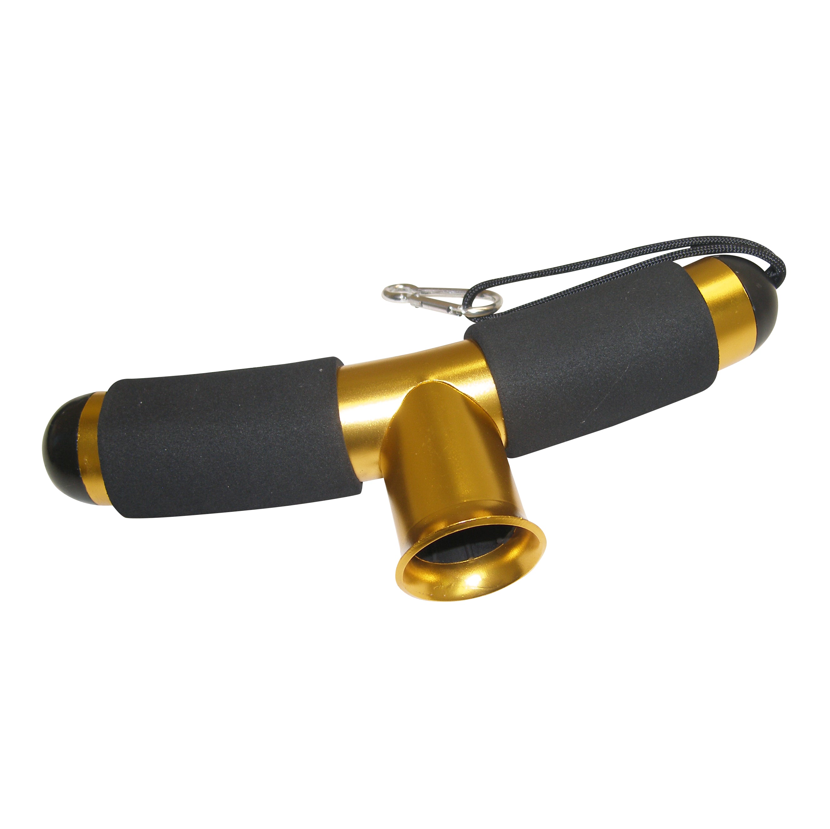 Ultra compact, lightweight design eliminates the need for belts or ties! Perfect for situations requiring additional leverage to land a large fish and to reduce fatigue (by transferring the weight of the rod from the arms and wrists to the hip or waist). Easy to share among anglers! Fits all rod butts 1.1 inch - 1.2 inch (28mm - 30mm) diameter. Weighs less than 1/2 pound! 9.25" x 3".