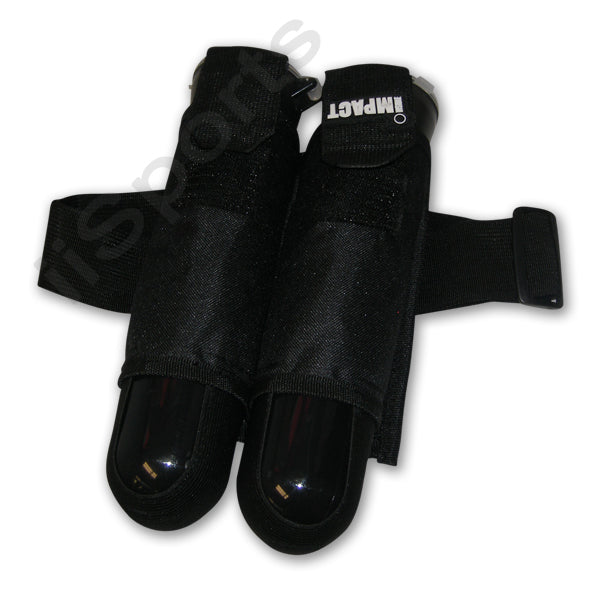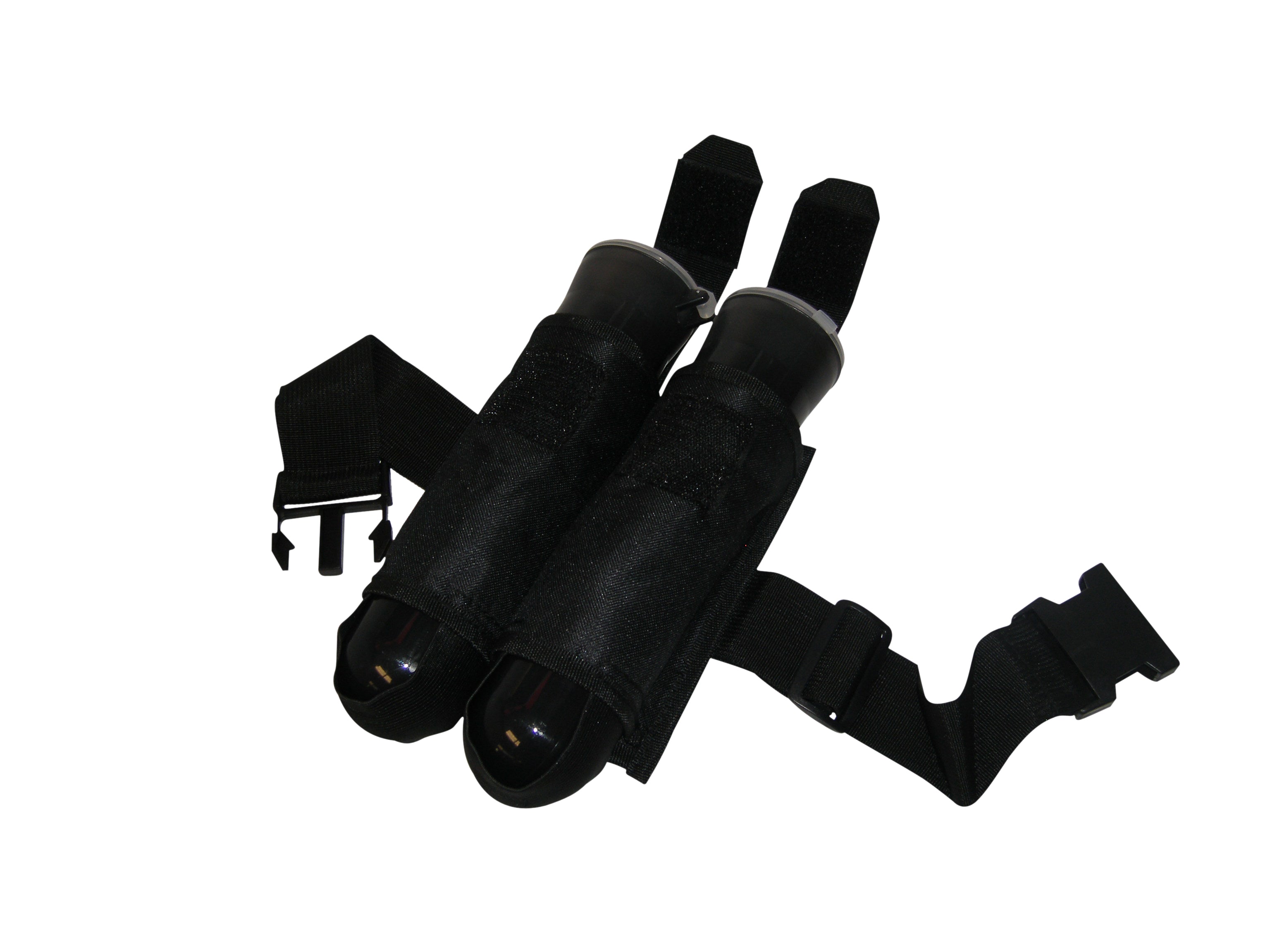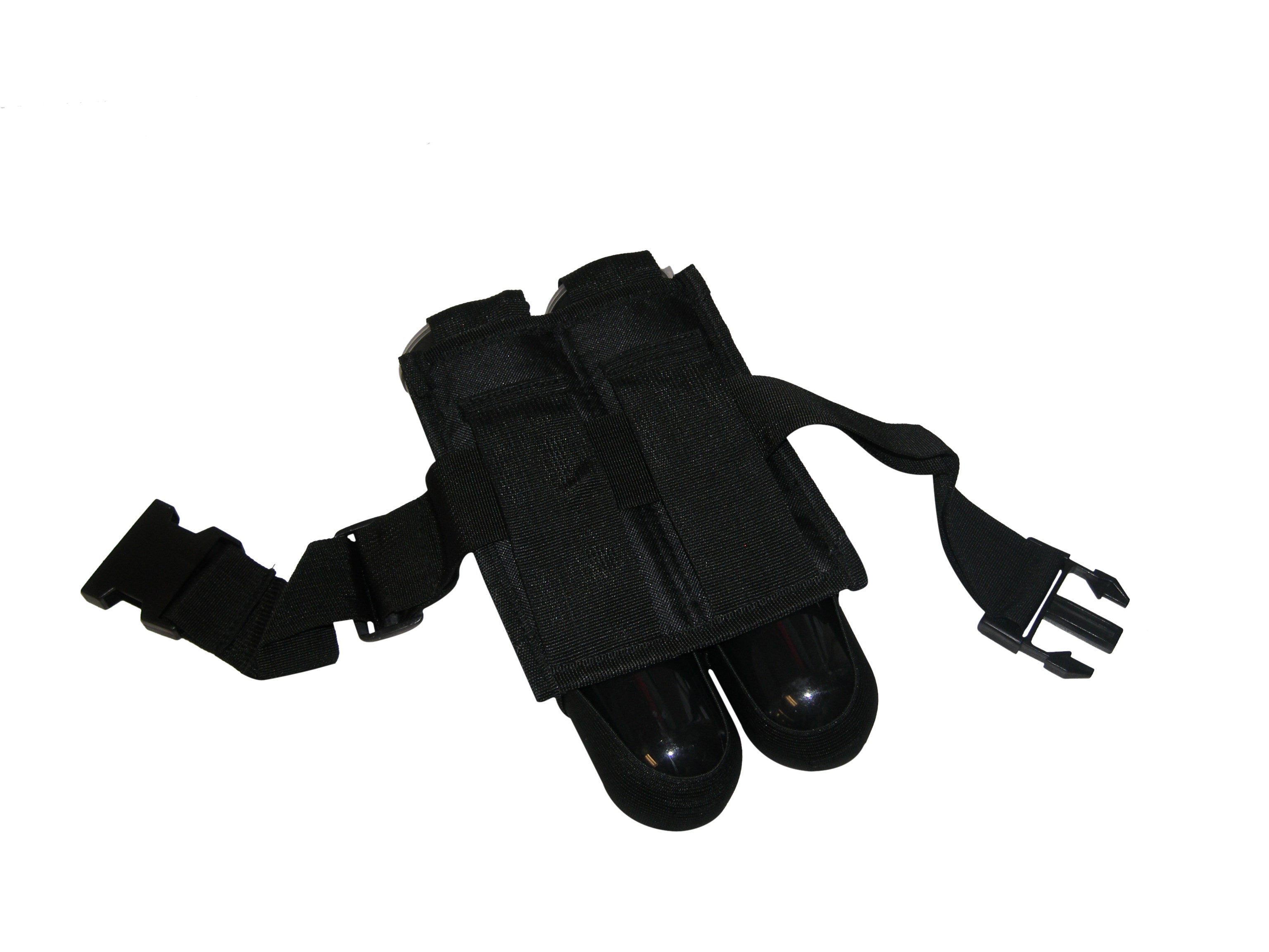 Deluxe double Paintball pod pouch holds two 140 round flip-top tubes (INCLUDED) and comes with an adjustable web belt. Constructed of heavy black polyester material and features two separate pouches with velcro flaps and reinforced stitching throughout. Designed with 'elastic ejection straps' which pushes the tube out.