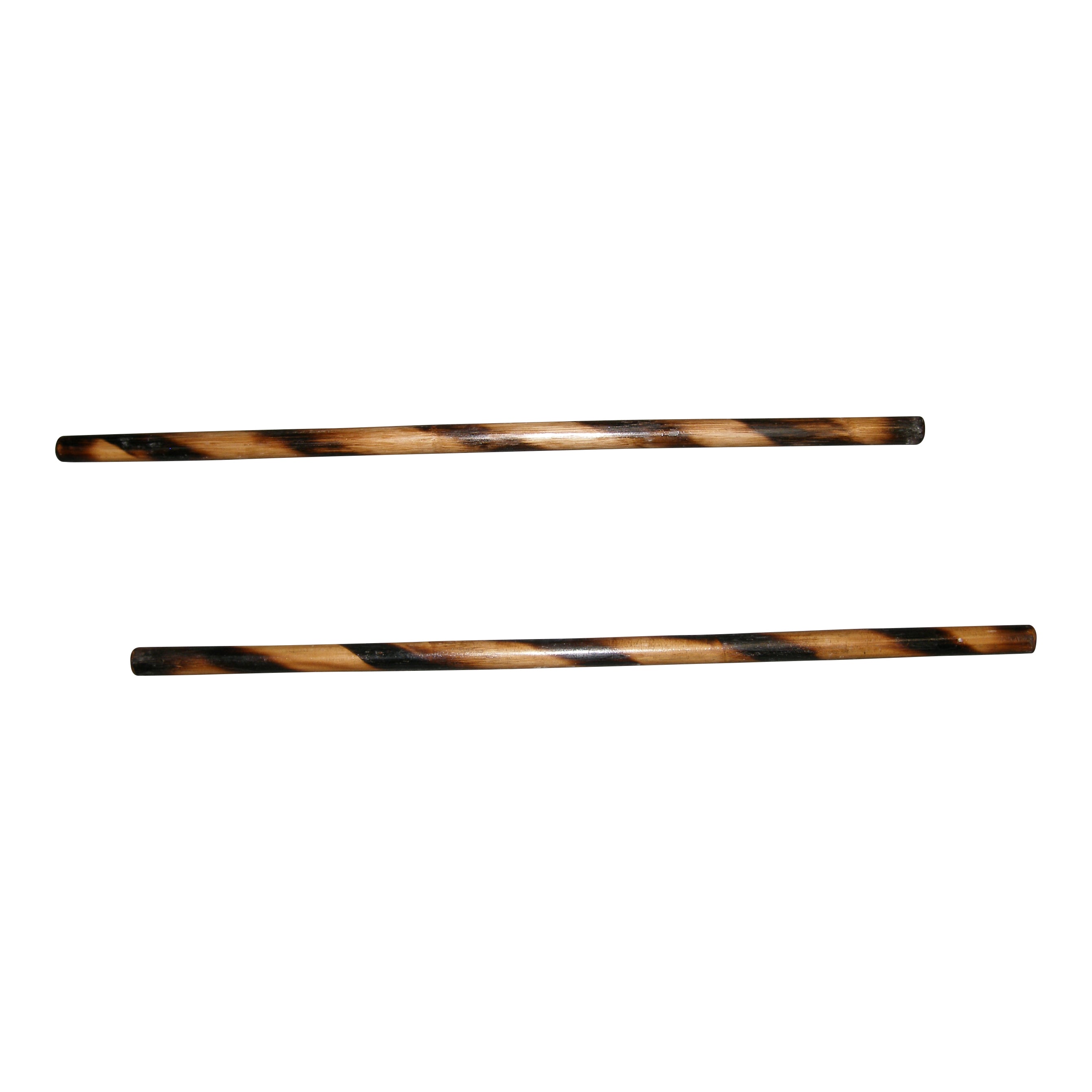 Imported directly from the Philippines! Set includes a matched set of TWO STICKS and Carry Storage Bag. These authentic sticks are handcrafted in the Philippines by craftsmen of Cebu. Each stick features a light traditional burn pattern and clear finish. Measures approx. 28" long and approx. 7/8" thick. These sticks are very durable! Great for all around training and demonstrations. Burn Pattern MAY vary from picture.