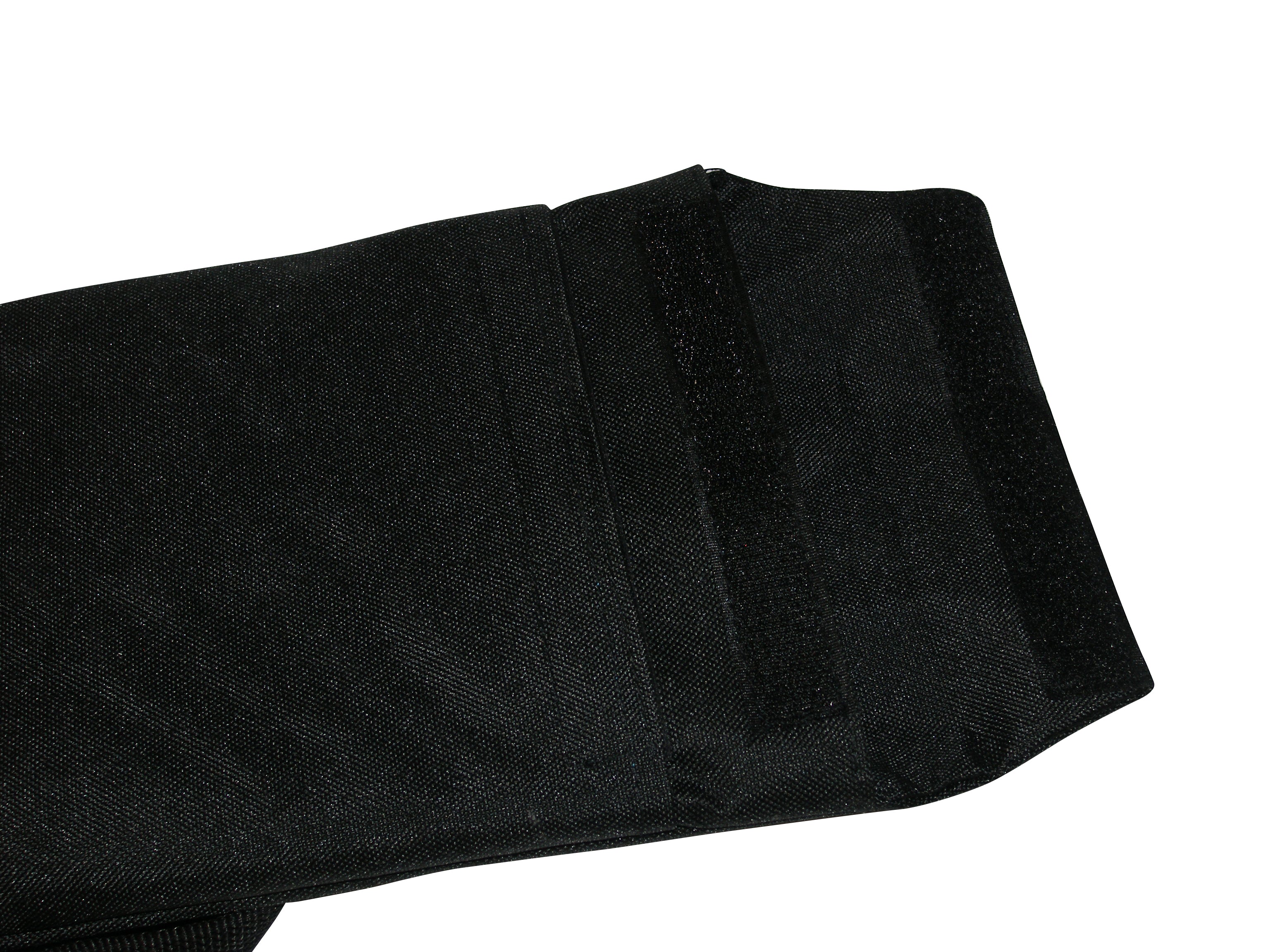 Ronin Gear USA brand. Smartly designed 2-pocket Escrima bag holds up to eight 28 inch long sticks and swords. Constructed of durable, water & tear resistant black ballistic polyester cloth. Features a large stick pocket with hook/loop closure, dagger pocket and accessory pocket. With adjustable shoulder strap. 30" long, 6" wide. A very nice bag for transporting your equipment.