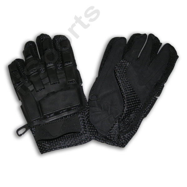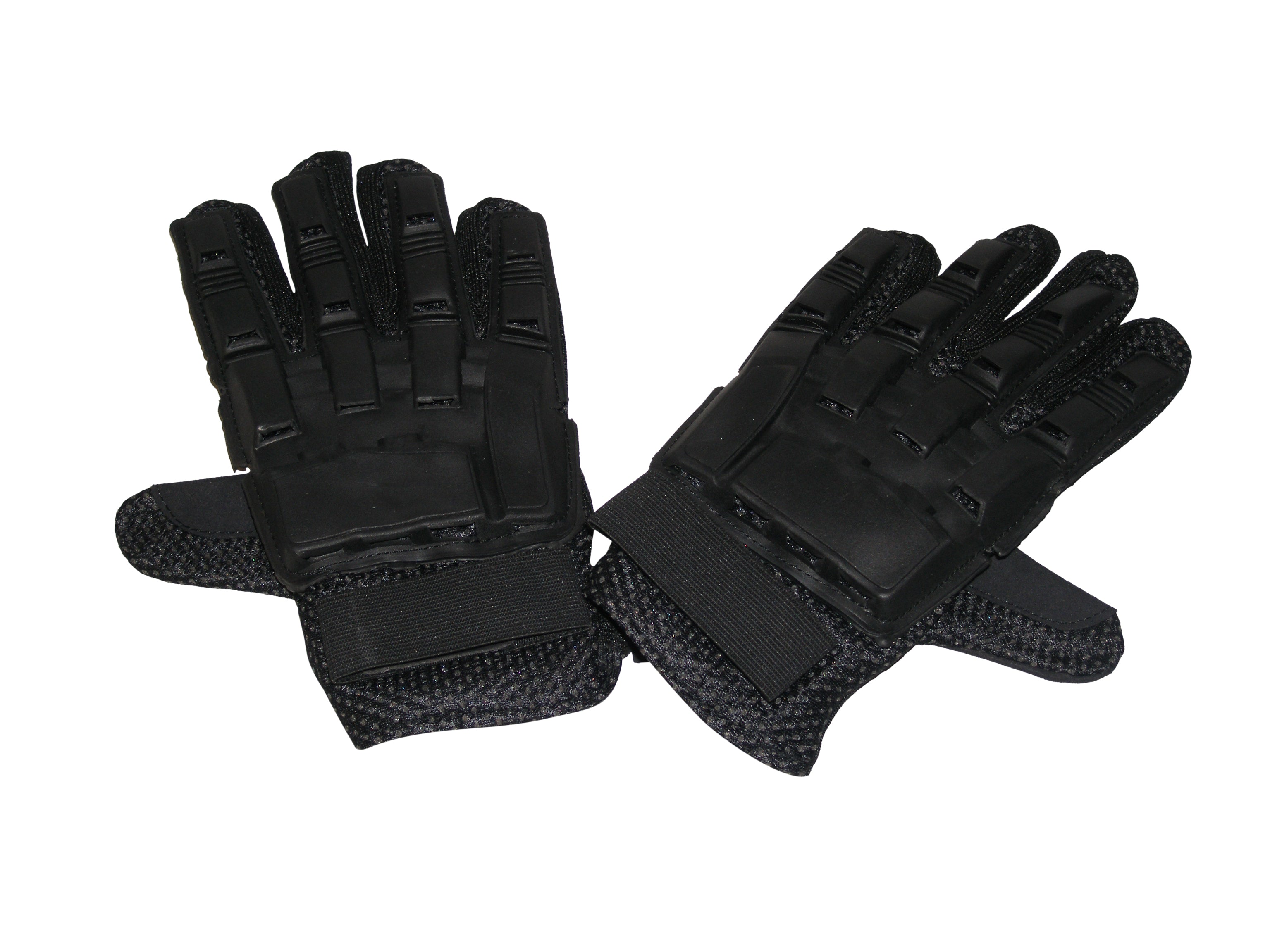 Full Finger Protection! Top design for Paintball & Airsoft! Constructed of soft leather and mesh material to provide the perfect combination of durability and cool; comfortable wear. The full-finger design with flexible plastic armor backing provides maximum protection for the entire fingers; knuckles and back hand. Velcro strap secures firmly around your wrist. Black. Adult Sizes