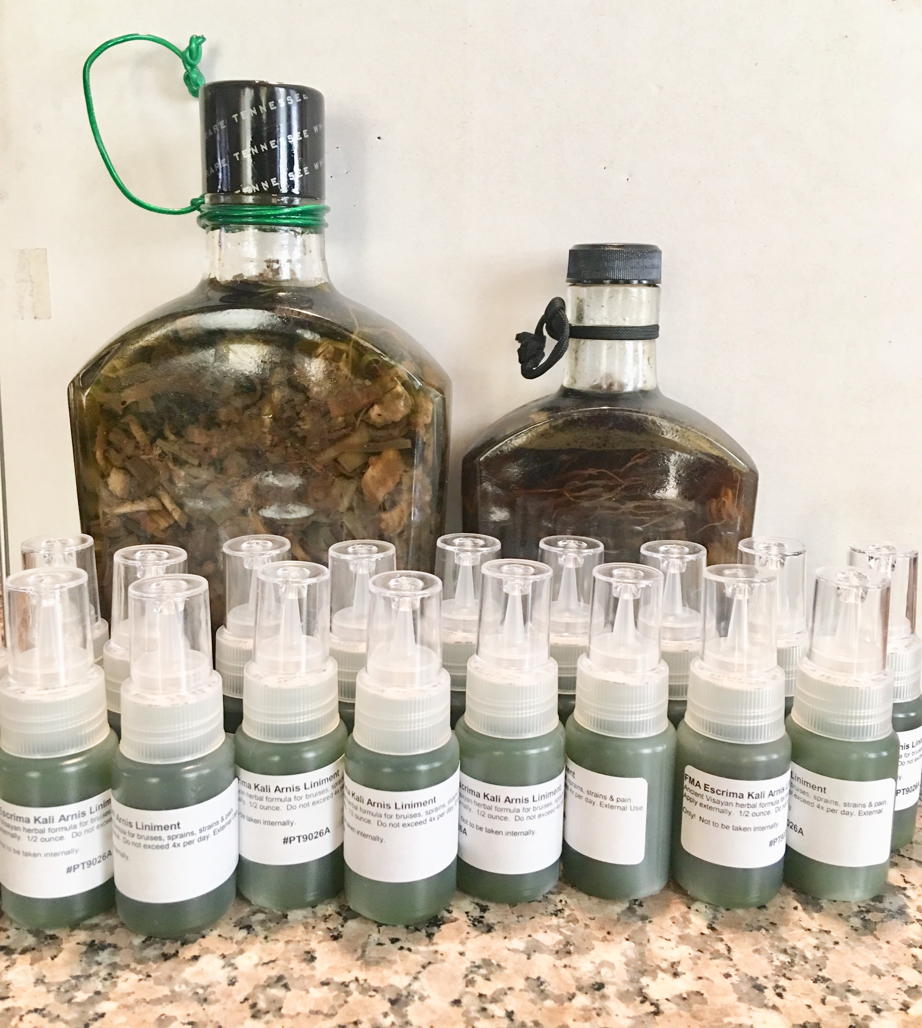 Ancient Visayan herbal formula for general treatment and relief of temporary bruises; sprains; muscle spasm; strains; contusions and pain. Similar to Chinese Dit Da Jow. Especially effective for Filipino Martial Arts, Kali; Escrima and Arnis practitioner. Apply externally to affected area. 1 ounce bottle. Do not exceed 4 times per day.