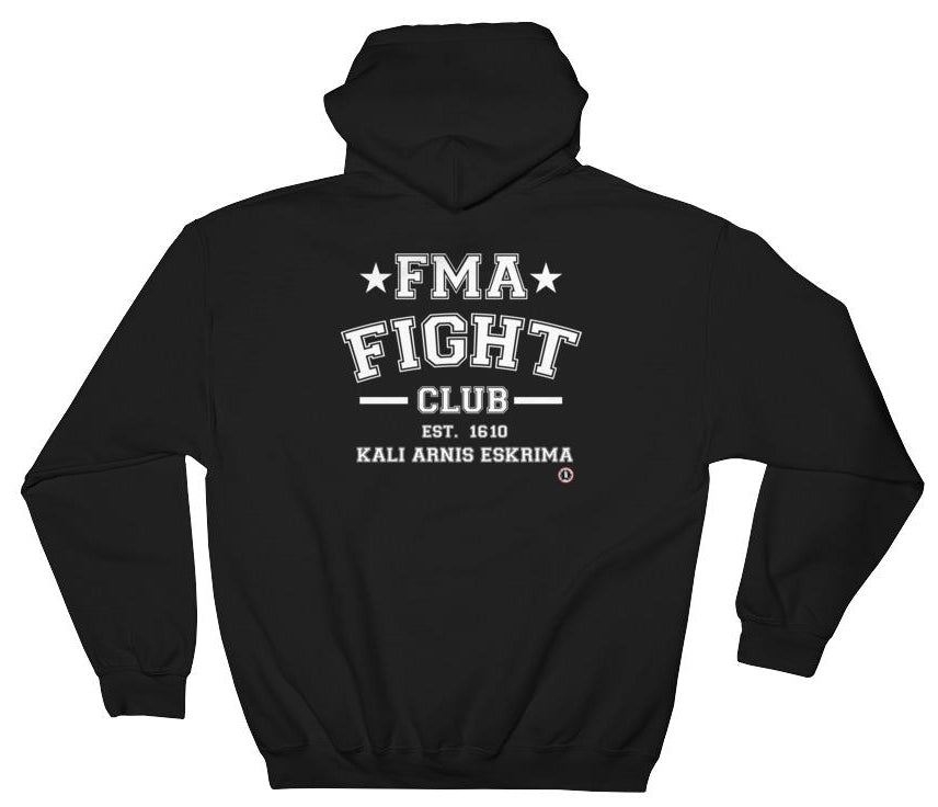 White design printed on the back of a premium 50/50 cotton/polyester blend hooded black sweatshirt. Double-needle stitched with front pouch pocket and double-lined hood. This hoodie is perfect casual wear for the martial artist! Adult sizes.