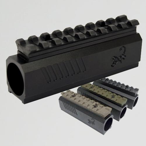 Allows the mounting of any Picatinny mountable accessory on the top or side of your Tippmann TiPX pistol. . LAPCO manufactures all of our own Picatinny rails to military published specifications. The rail is molded from a high-grade; impact resistant polymer. Each Front Block is precision machined from high-grade aluminum. Every Front Block has the LAPCO Scorpion milled into the body and is finished using an extra-hard black anodizing process for an extremely durable finish. Black.