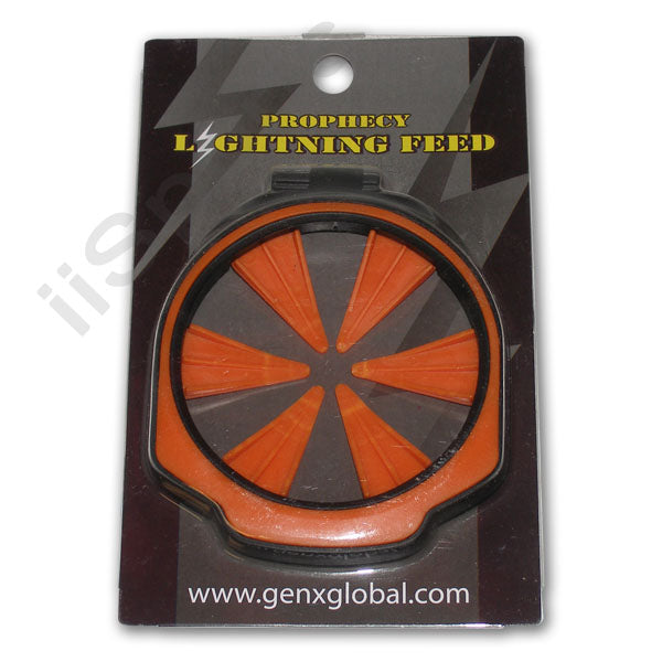 ORANGE The Lightning is an improved version of the popular Speed Feed concept which allows reloading without opening the hopper lid. Easily replace your lid with a cover that features multiple flexible silicone fingers and a heavy-duty reinforced lid. Allows lightning fast reloads with any size tube. Flexible fingers allow fast pod dumps but won't let balls fall out! Installs in seconds. Fits the Empire Prophecy and Empire Prophecy Z2.