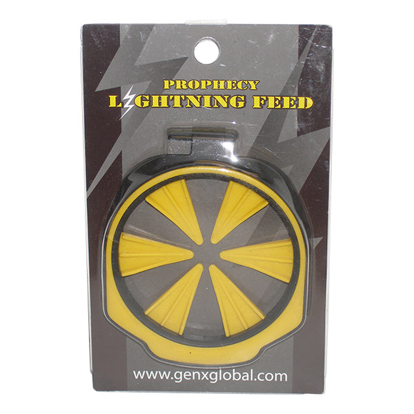 YELLOW The Lightning is an improved version of the popular Speed Feed concept which allows reloading without opening the hopper lid. Easily replace your lid with a cover that features multiple flexible silicone fingers and a heavy-duty reinforced lid. Allows lightning fast reloads with any size tube. Flexible fingers allow fast pod dumps but won't let balls fall out! Installs in seconds. Fits the Empire Prophecy and Empire Prophecy Z.