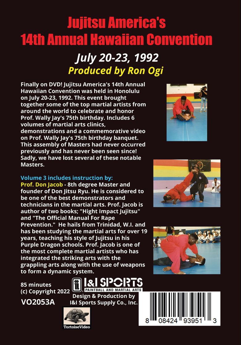 Finally on DVD! Jujitsu America's 14th Annual Hawaiian Convention was held in Honolulu on July 20-23, 1992. This event brought together some of the very top martial artists from around the world to celebrate and honor Prof. Wally Jay's 75th birthday. Includes 6 volumes of martial arts clinics, demonstrations and a commemorative video on Prof. Wally Jay's 75th birthday banquet. This assembly of Masters had never occurred previously and has never been seen since! Sadly, we have lost several of these notable Masters.
