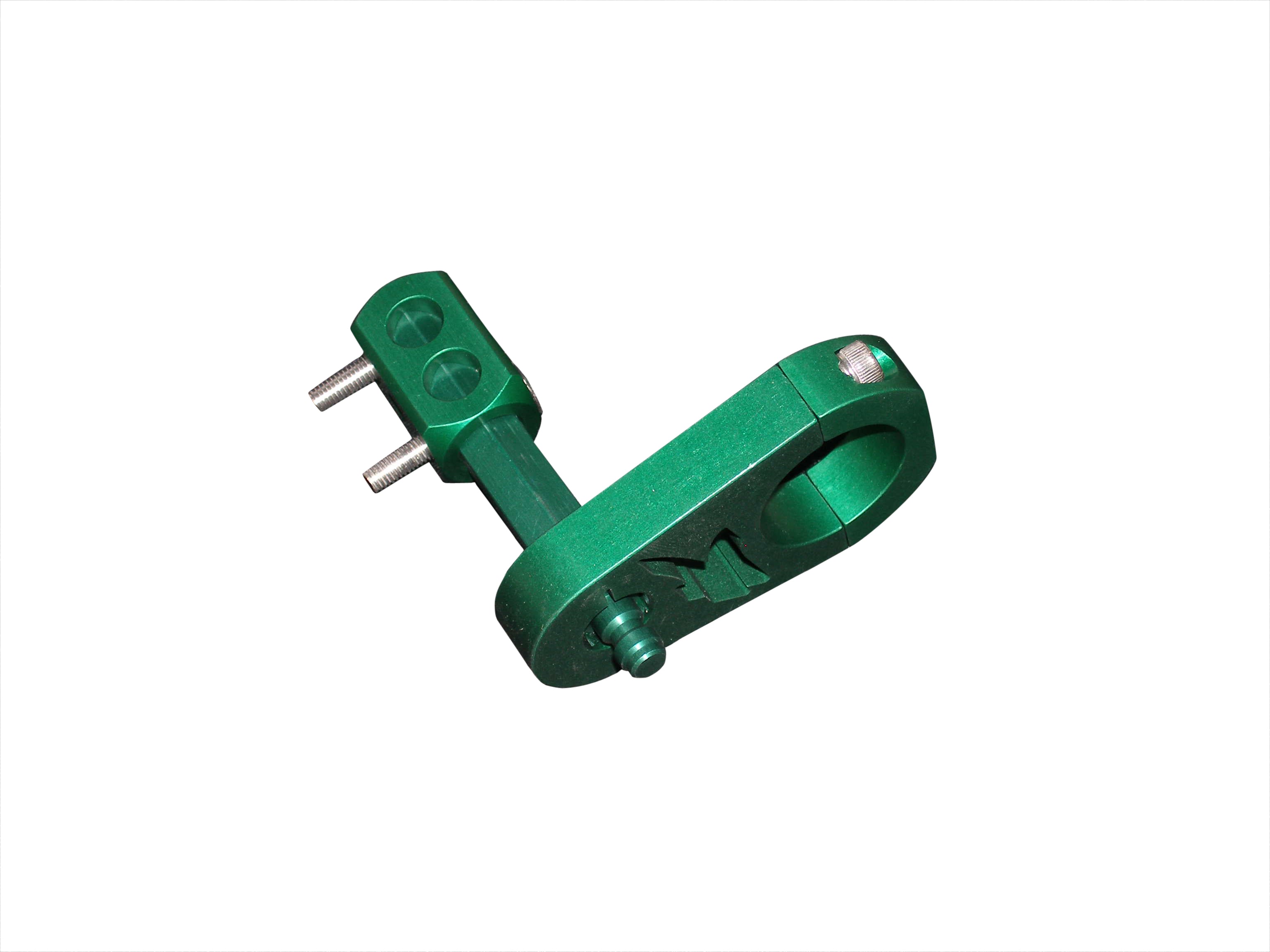 GREEN Unique design from KAPP, the Drop Zone II - Stubby features ultimate freedom to move your tank around by letting you move your tank from front to back and from side to side. Plus this model gives you a place to store your fill nipple cap while you are getting your tank filled! The Stubby drop zone cradle allows the player a close drop for Raptor style tanks. Precision machined aircraft aluminum with mounting screws. Completely assembled. Green anodized. Specs: 3" long; 3" tall; 2" wide.