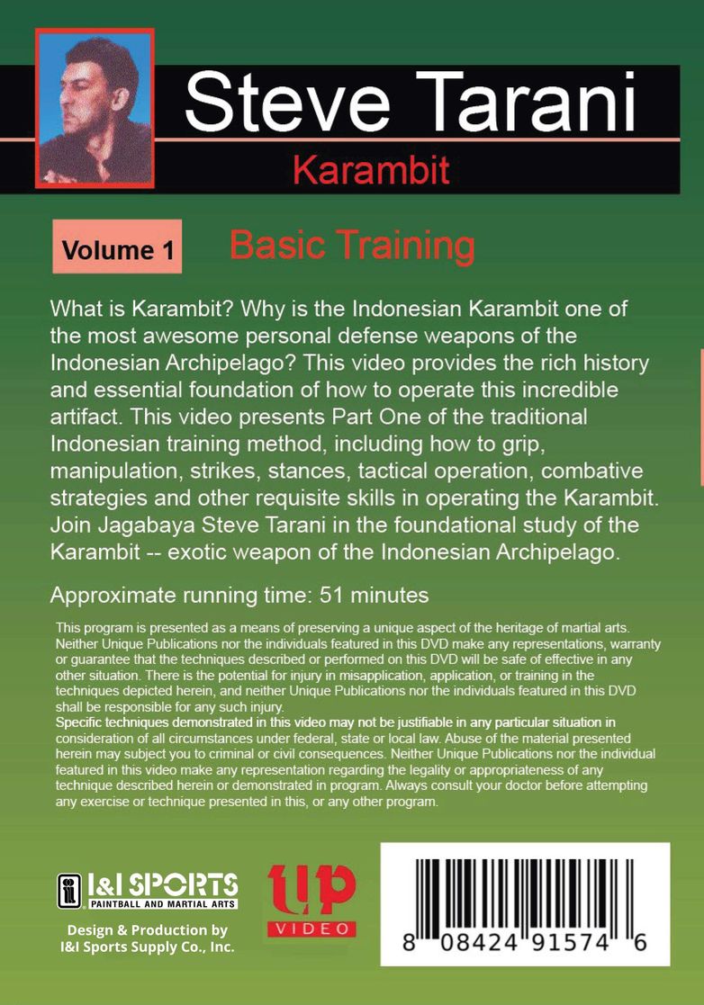 Traditional bladed weapon of the Indonesian martial arts. The Karambit was developed in the jungles of West Java; deep in the heart of Indonesia; where secrets of the Karambit masters are revealed for the first time in this unique contribution to the world of martial arts edged weapons training. Jagabaya Steve Tarani teaches the basic training methods; including how to grip; manipulation; strikes; stances; tactical operation; combative strategies and other requisite skills in operating the Karambit.