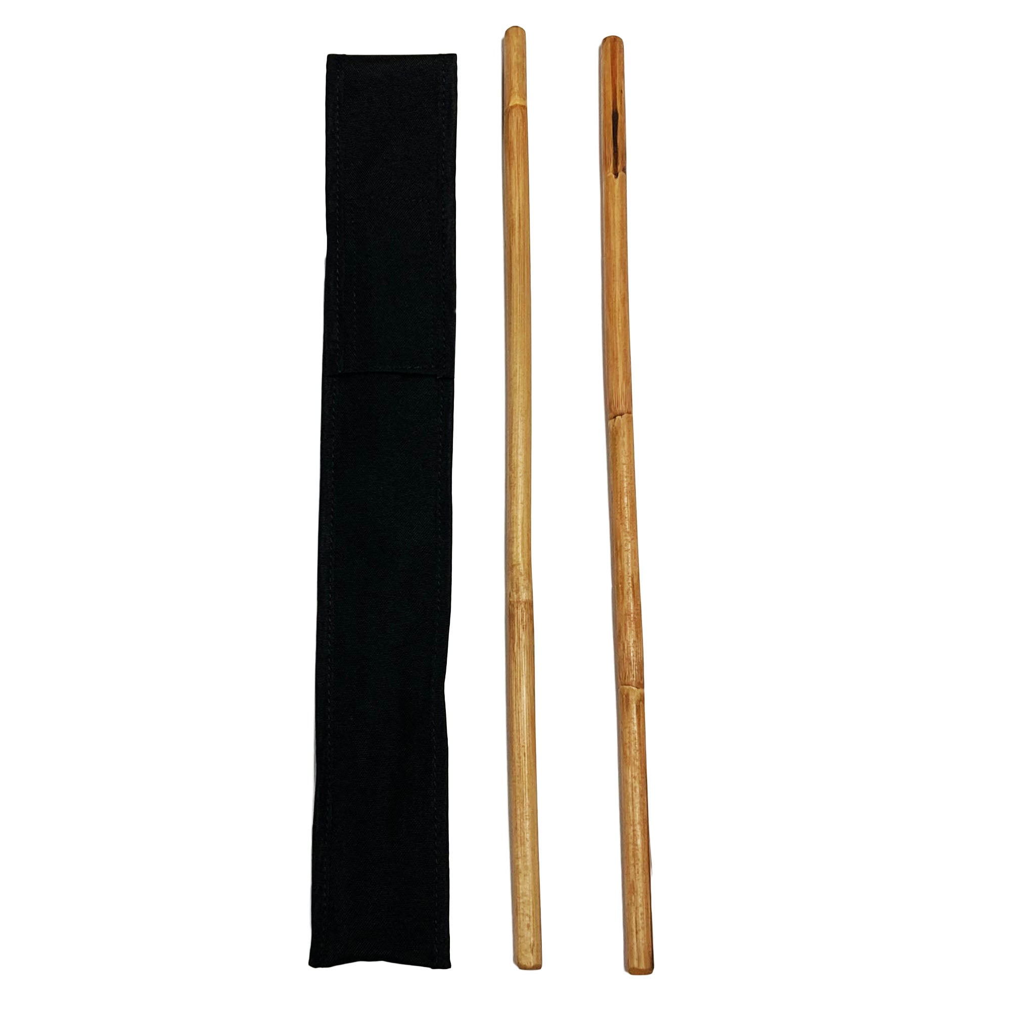A pair of smaller rattan Escrima, Kali, Arnis sticks with storage case. Same quality as our regular sticks but designed for children! 1/2" diameter fire-hardened rattan fighting sticks handcrafted in the Philippines by the craftsmen of Cebu. Each stick features a light clear finish. Plain or with burn pattern. Great for demo, tournaments and training.