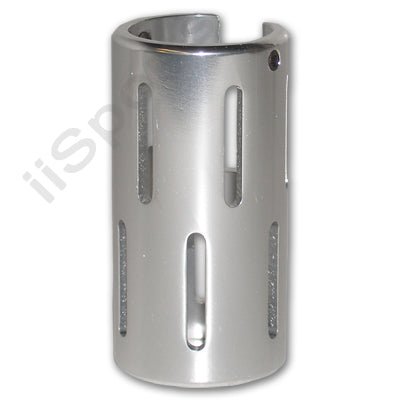 Genuine Kingman factory replacement barrel shroud for the SPYDER AMG; AMG CLASSIC; and COMPACT SE. May fit other models but NO guarantees! Silver color aluminum construction. It has two screws included to lock the shroud around the barrel. Length is 2 « inches; and width is 1 «.