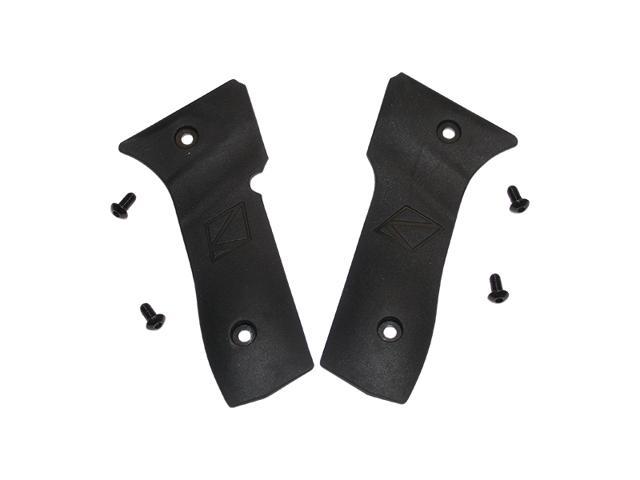 Complete rubber grip set for the KT Chaser or Eraser 43cal/11mm Paintball pistol. This set includes the left and right panels with embossed KT logo and 4 mounting screws. Genuine KT factory replacement part from Kingman Training. Black.