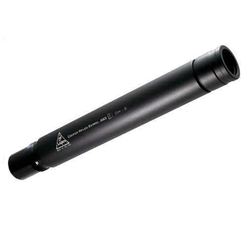 BigShot 8" Assault rifled barrel. Fits all DYE, Autococker, MG100 and compatible threaded markers. Crafted in the USA of high-grade aluminum. Unique rifling provides the same accuracy and distance as a much longer smoothbore barrel. Anodized using a proprietary process that produces an extra hard and durable finish. Thread protector Muzzle Tip included.