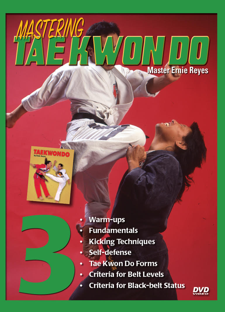 This exciting five-volume DVD series Master Ernie Reyes includes warm-ups, fundamentals, outstanding kicking techniques, self-defense and taekwondo forms, plus criteria needed to advance in belt levels and achieve black-belt status.