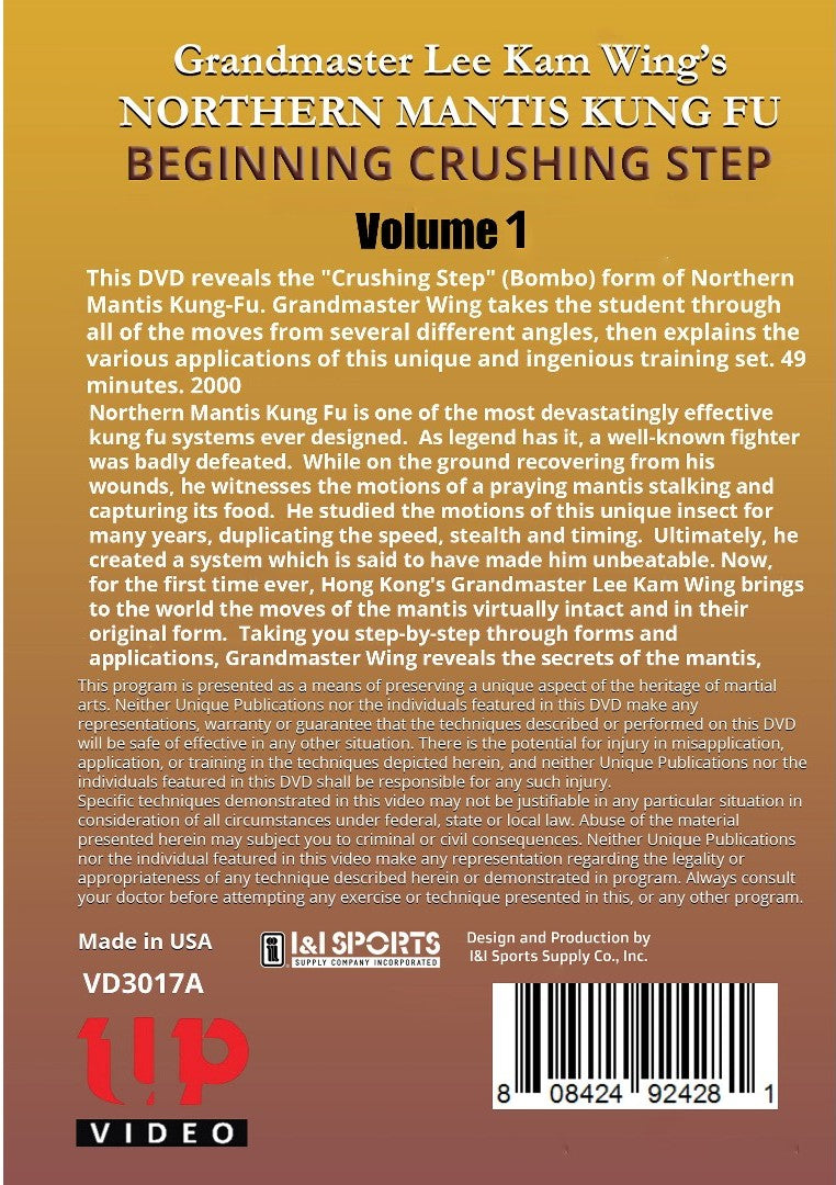 Northern Mantis Kung Fu is one of the most devastatingly effective Kung Fu systems ever designed. As legend has it, a well-known fighter was badly defeated. While on the ground recovering from his wounds, he witnesses the motions of a praying mantis stalking and capturing its food. He studied the motions of this unique insect for many years, duplicating the speed, stealth and timing. Ultimately, he created a system which is said to have made him unbeatable. Now, for the first time ever, Hong Kong's Grandmaster Lee Kam Wing brings to the world the moves of the mantis virtually intact and in their original form. Taking you step-by-step through forms and applications, Grandmaster Wing reveals the secrets of the Mantis, straight from the source!