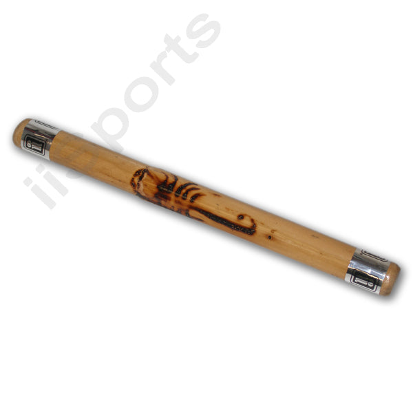 Used in conjuction with the longer sticks. Believed to have gained its prominence in the Bantangas & Visayan regions of the Philippines. Constructed in the same manner as our long sticks. 12 inch burned rattan short stick. Perfect for carrying in your bag for self-defense striking; locking and disarming. Also used as a dagger substitute when training stick and dagger techniques. With reflective; silver mylar 'Retina Retention Tape' on each end. Approx. 7/8" - 1" diameter.