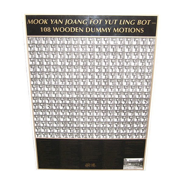 Large poster detailing the 108 wooden dummy movements as performed by Sifu Randy Williams. Also known as the Mook Yan Joang Fot Yut Ling Bot. 39" x 28". Comes folded.