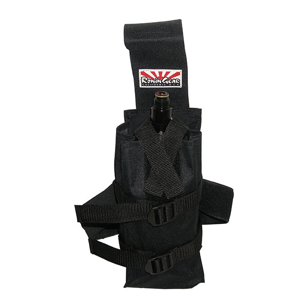 New; Improved Universal design! The Ronin Gear Remote Tank Pouch attaches to any belt (not included) or MOLLE vest; and is an excellent way of carrying your spare tank (up to 24 oz CO2 or any HPA tank up to 88 cu) as a back-up or for a remote system. Height is adjustable. Tank secures in place with two straps at the neck and two around the bottle. Includes an adjustable leg strap. Constructed in the USA of heavy-duty polyester and webbing.